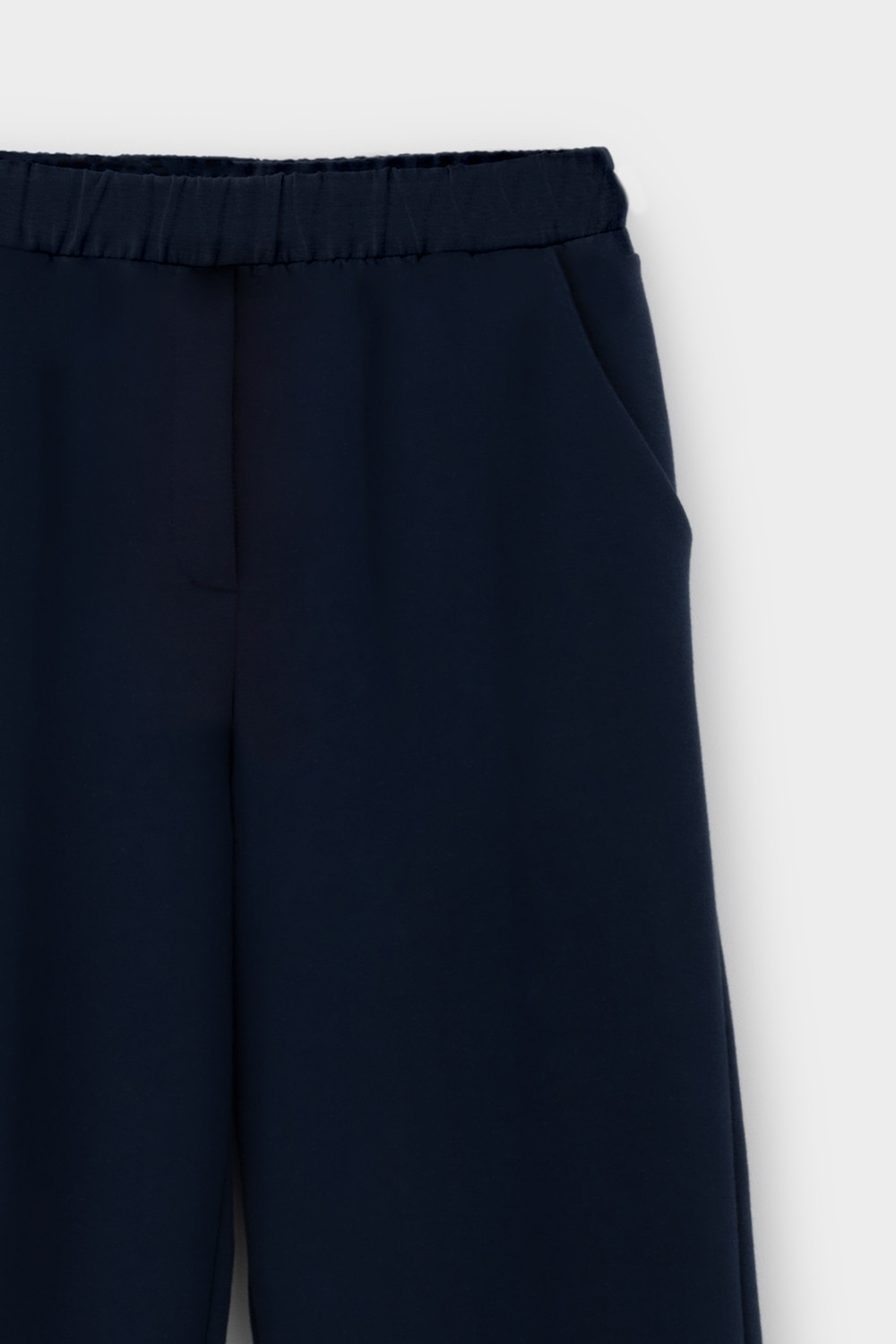 Классические брюки прямого кроя из премиального трикотажа DOUBLE FACE с добавлением спандекса. Широкий пояс из основного полотна с эластичной резинкой внутри, боковые карманы, придают изделию функциональность сохраняя комфорт. Незаменимая классика в летнем гардеробе. Цвет индиго является основой всех морских коллекций