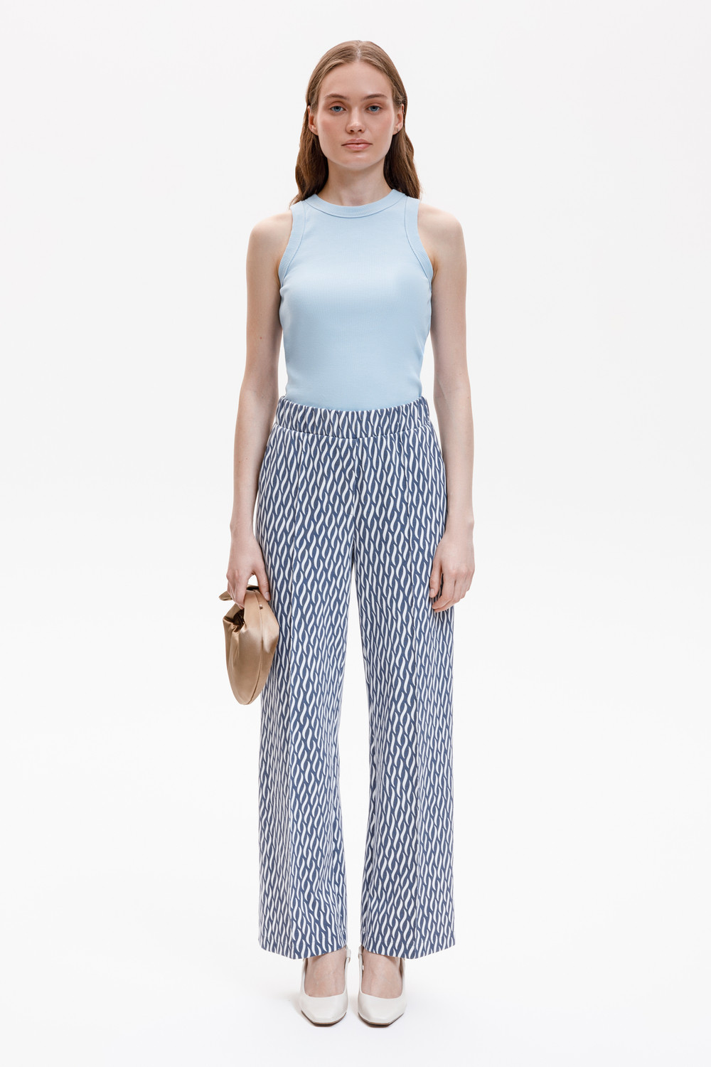 Брюки из премиального трикотажа DOUBLE FACE. За счет фактуры переплетения и специальных обработок сохраняют силуэт и форму. По передней части брюк застрочена стрелка, которая визуально удлиняет ноги. Боковые карманы добавляют функциональности изделию, а эластичная резинка в поясе комфорт при носке. В сочетании с жакетом из этой коллекции вы создадите элегантный образ для летних дней.