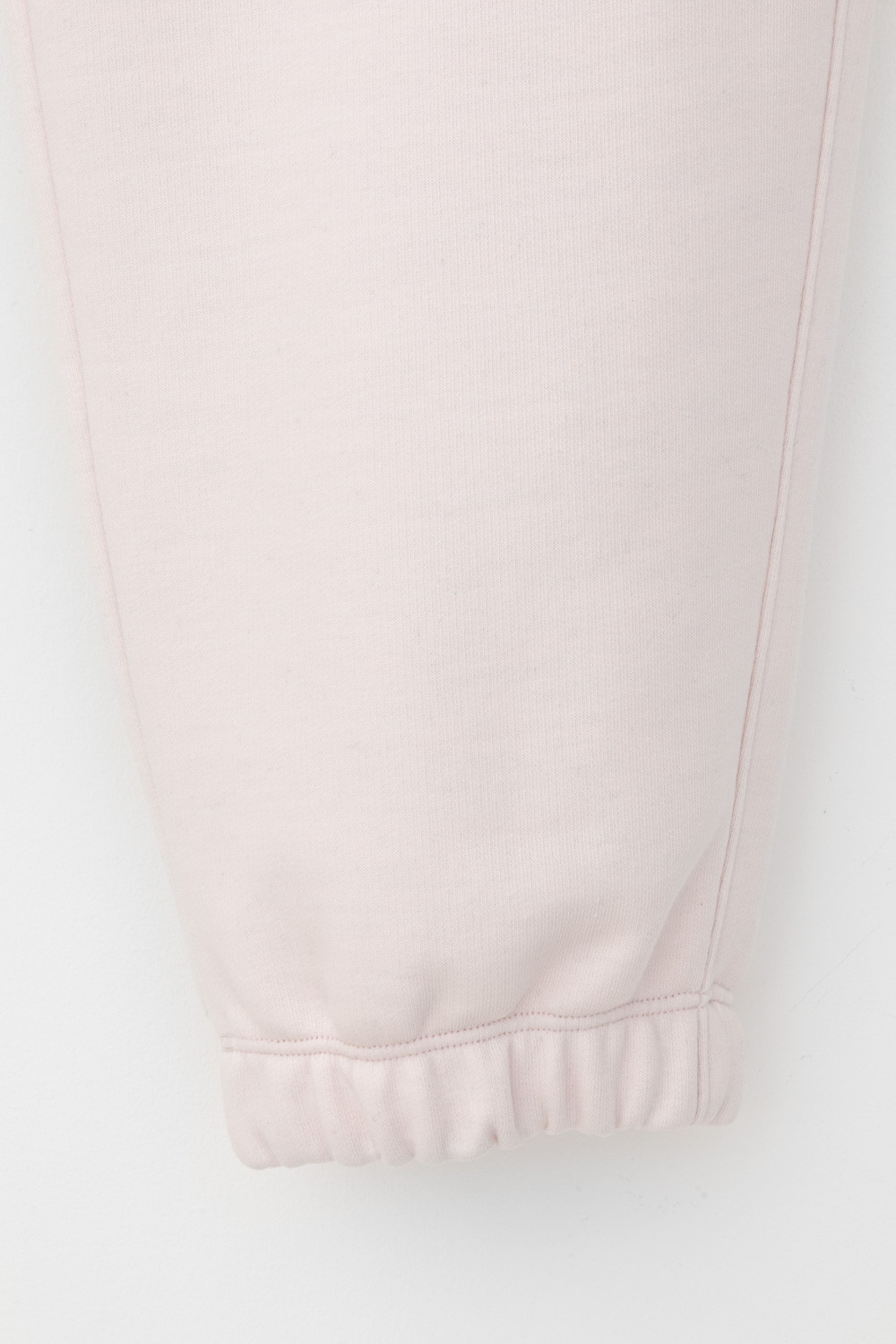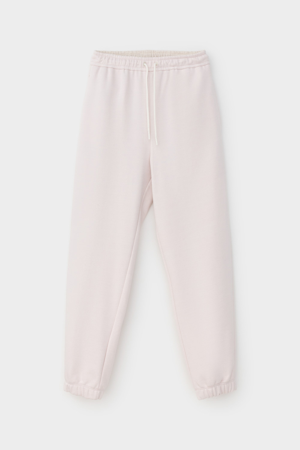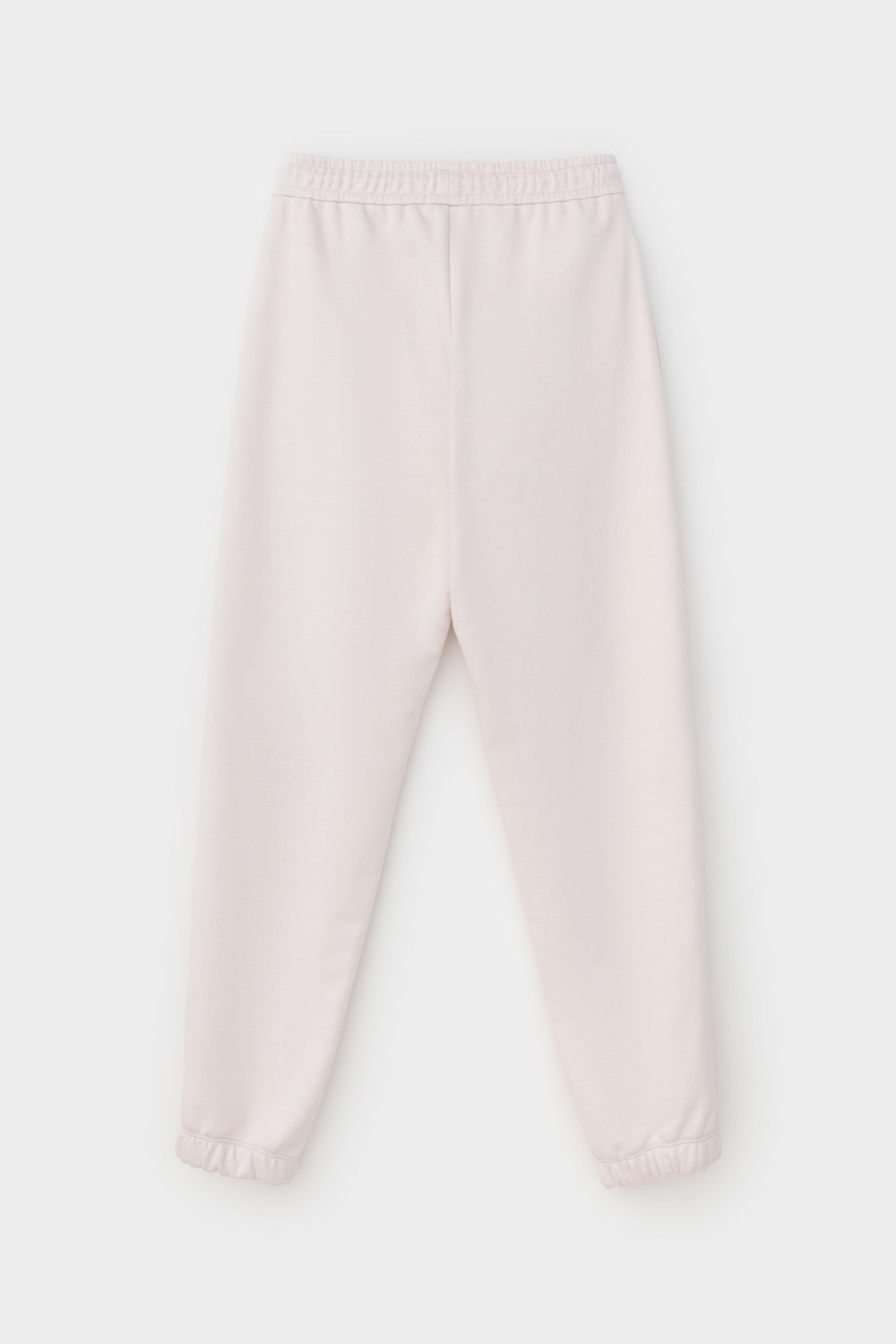Брюки из мягкого двухцветного футера. Внутренняя сторона изделия представлена в натуральном цвете хлопка, внешняя в нежно-розовом. За счет использования крашенной пряжи, данный вид полотна прошел минимальную обработку, что придало изделию мягкость и шелковистость.