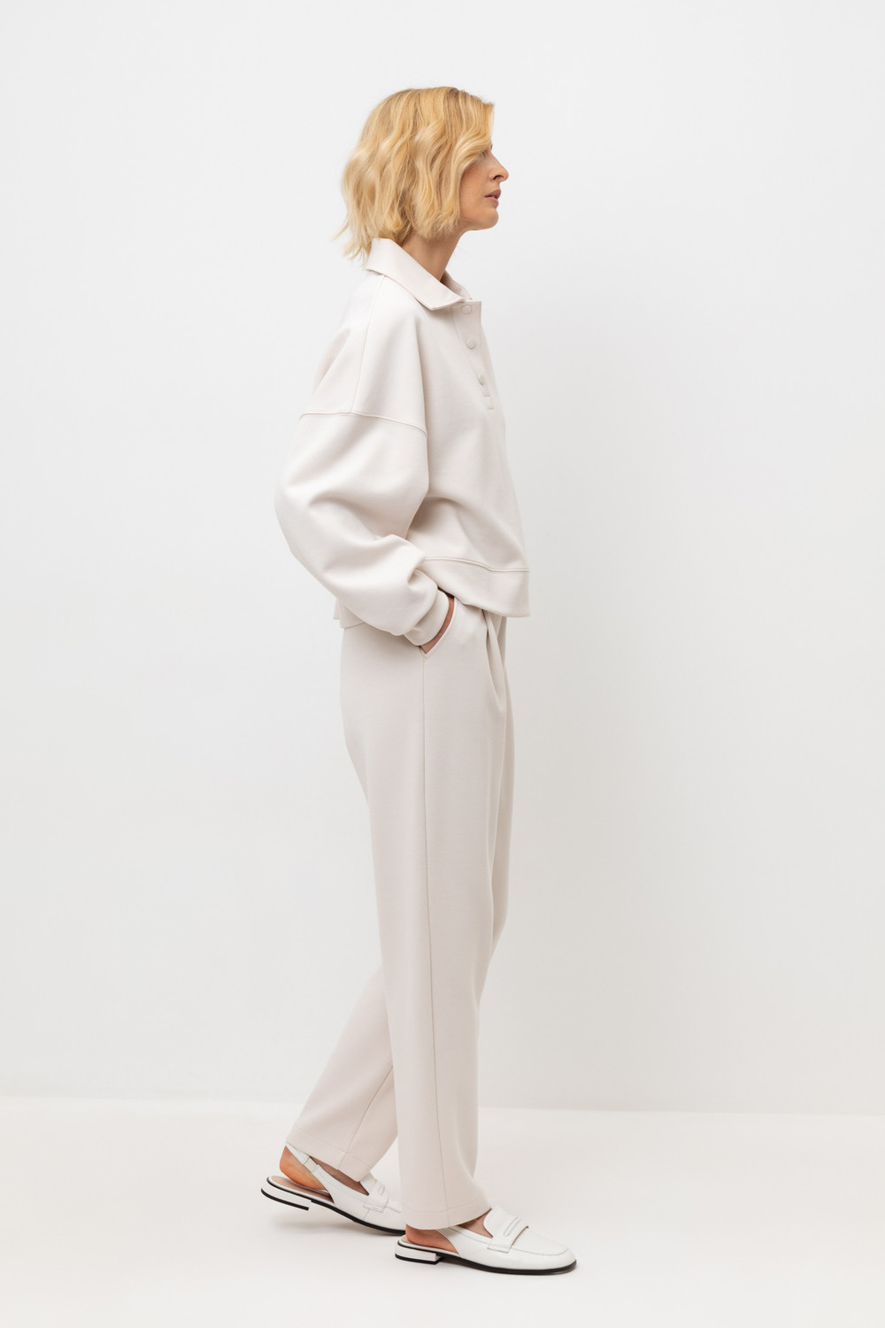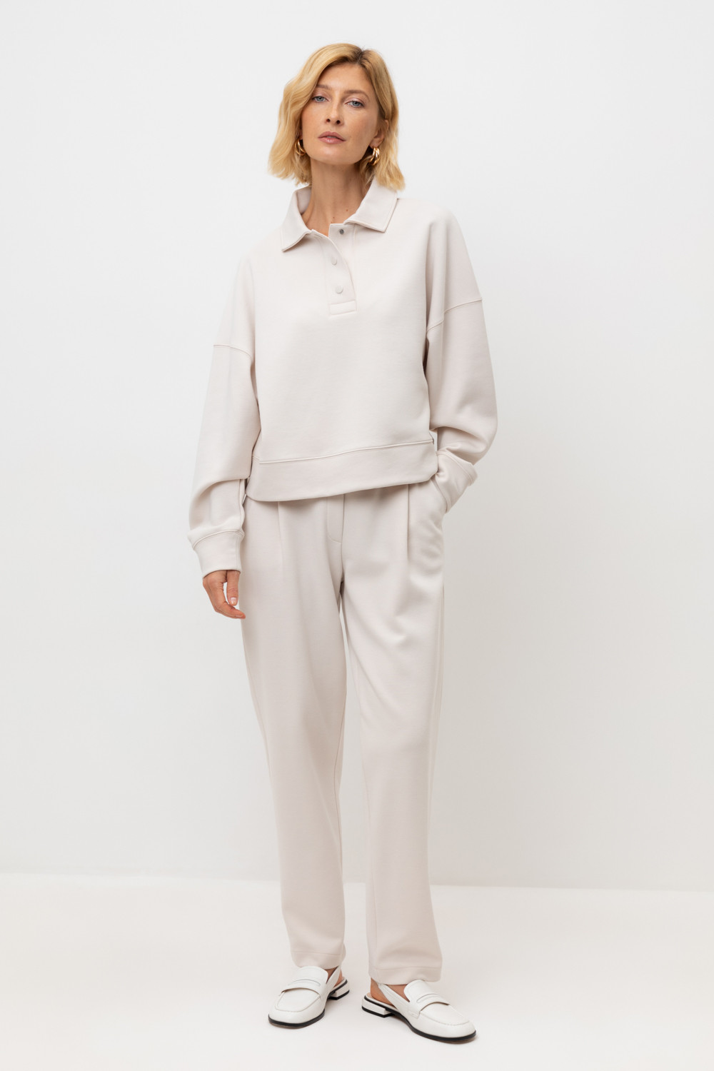 Брюки из высококачественного трикотажного полотна. За счет фактуры переплетения и специальных обработок сохраняют силуэт и форму, а хлопок в составе добавляет комфорт. Эластичный пояс обеспечивает идеальную посадку. Карманы и имитация гульфика придают брюкам классический стиль. В сочетании с джемпером-поло из этой коллекции вы создадите стильный образ для летних дней.