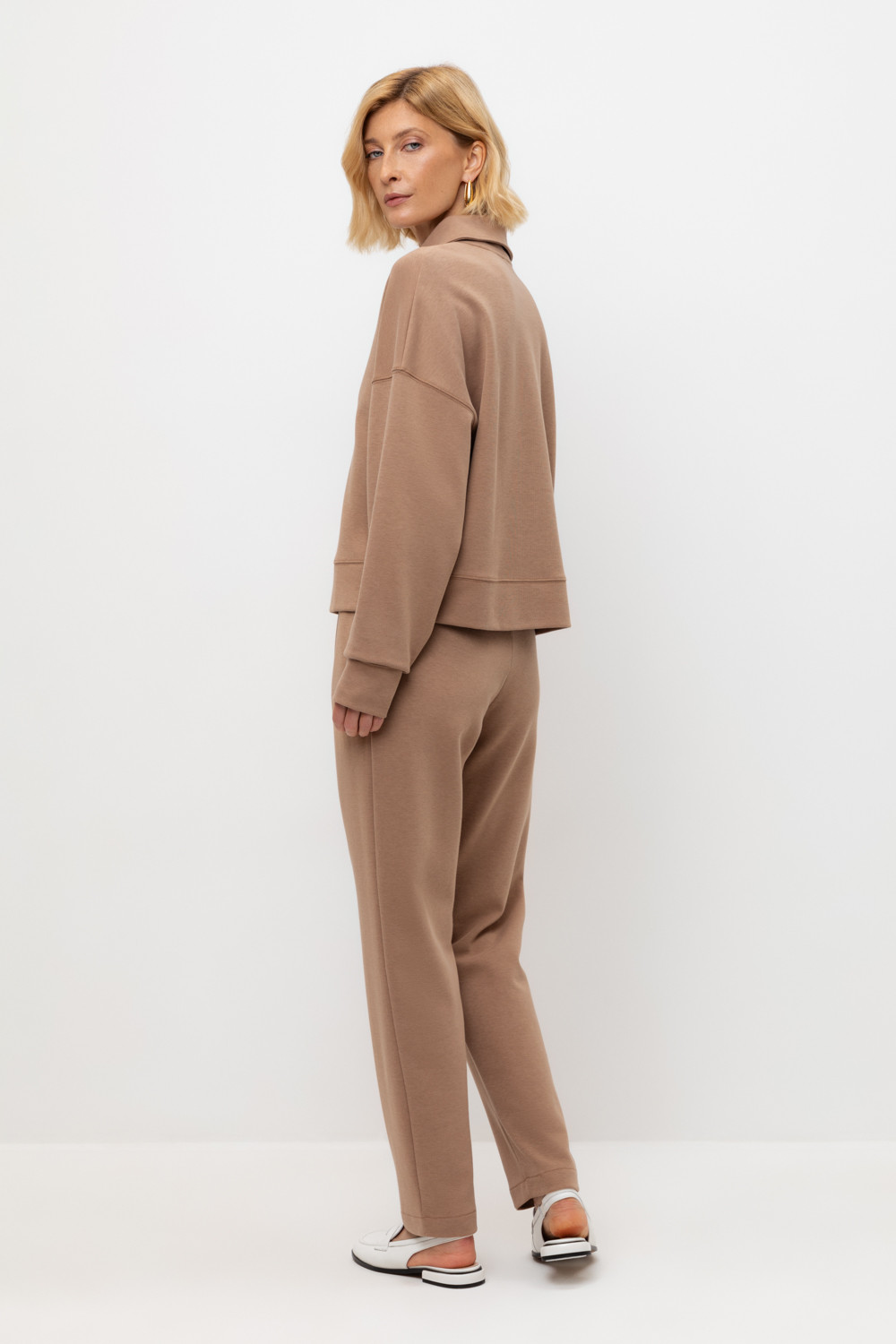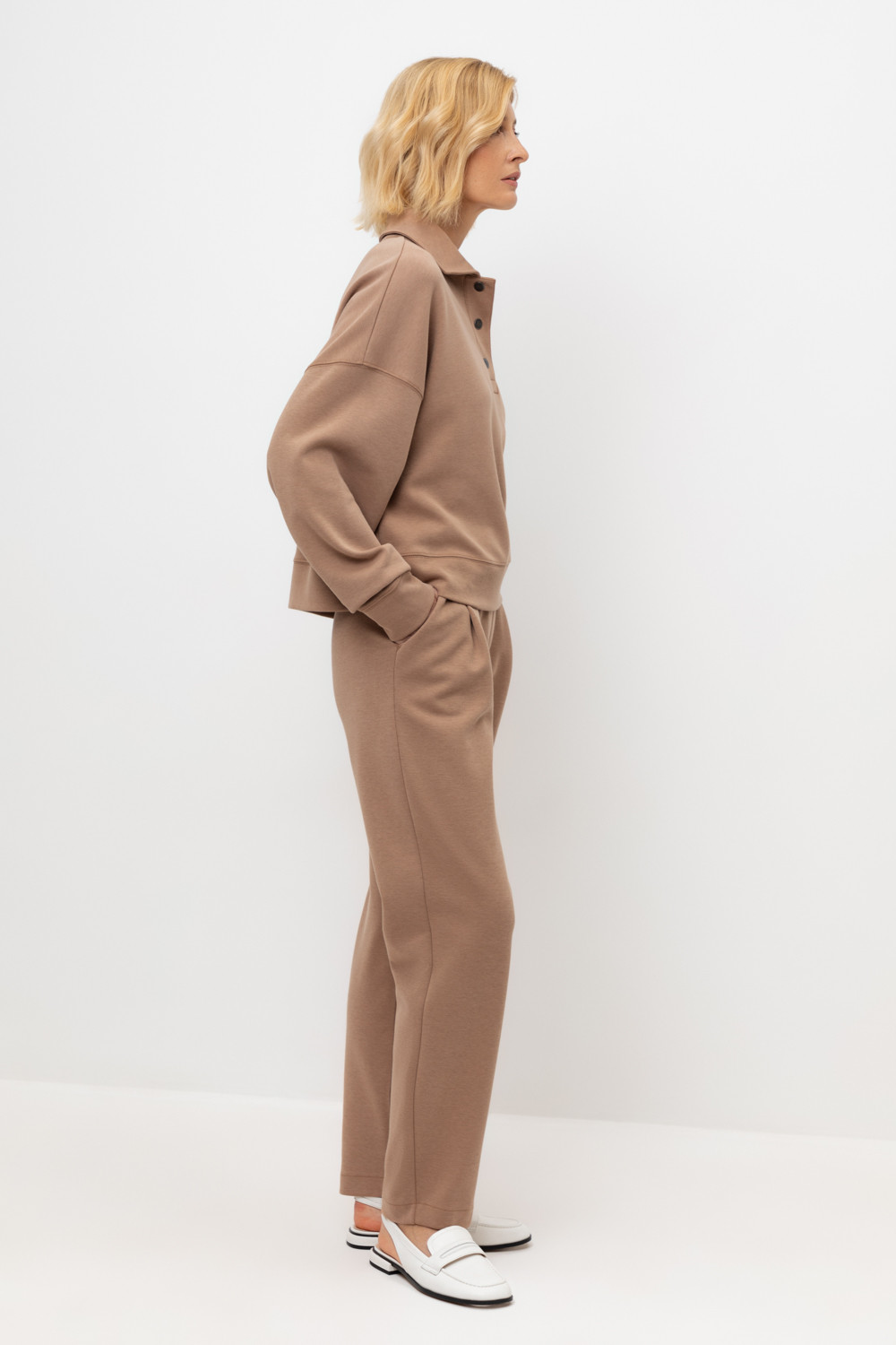Брюки из высококачественного трикотажного полотна. За счет фактуры переплетения и специальных обработок сохраняют силуэт и форму, а хлопок в составе добавляет комфорт. Эластичный пояс обеспечивает идеальную посадку. Карманы и имитация гульфика придают брюкам классический стиль. В сочетании с джемпером-поло из этой коллекции вы создадите стильный образ для летних дней.