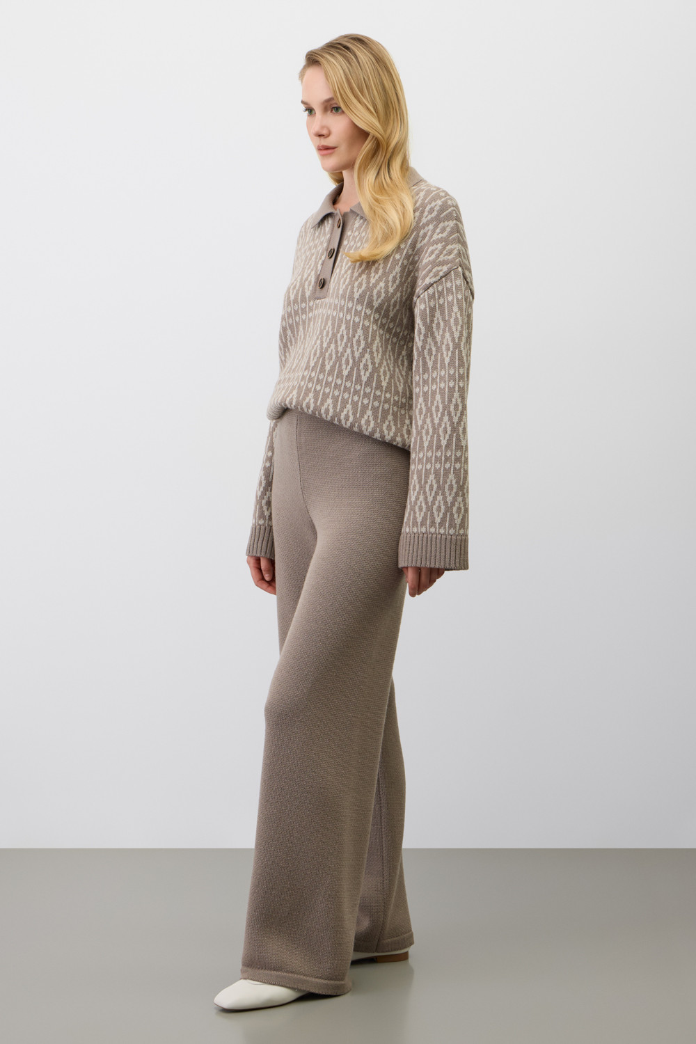 Мягкие брюки из премиальной пряжи, созданные с использованием инновационной технологии смешанного волокна. Уникальная технология производства позволила сформировать воздушную жаккардовую структуру, которая выглядит невероятно изысканно. Деликатное переплетение натуральной шерсти с современным акриловым волокном дарит непревзойденные тактильные ощущения.