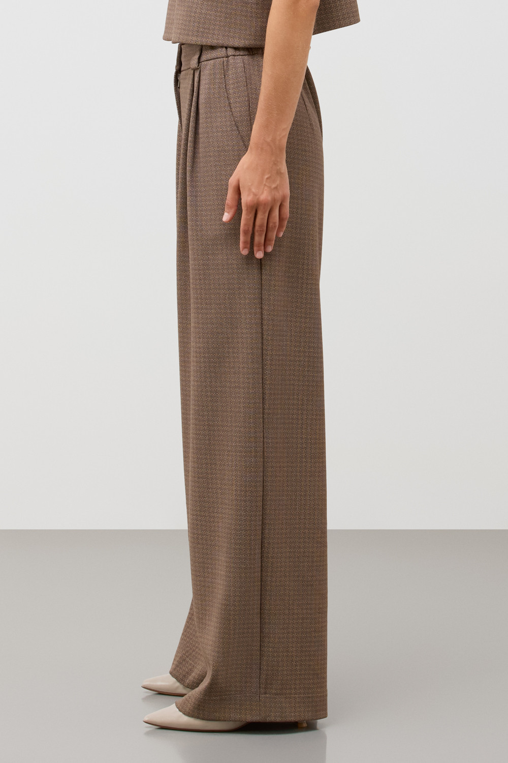 Брюки прямого кроя на резинке изготовлены из высококачественного трикотажного полотна DOUBLE FACE. Ткань прошла силиконовую обработку, что придает ей легкость и шелковистую текстуру. Прямой крой акцентирует силуэт, формируя элегантный классический образ. Боковые карманы добавляют изделию практичности.