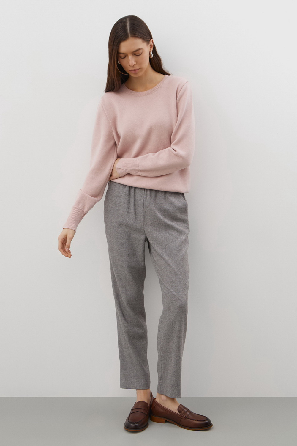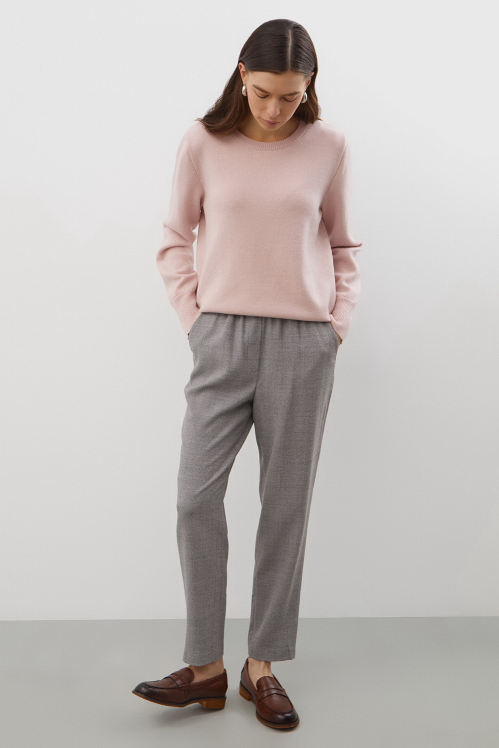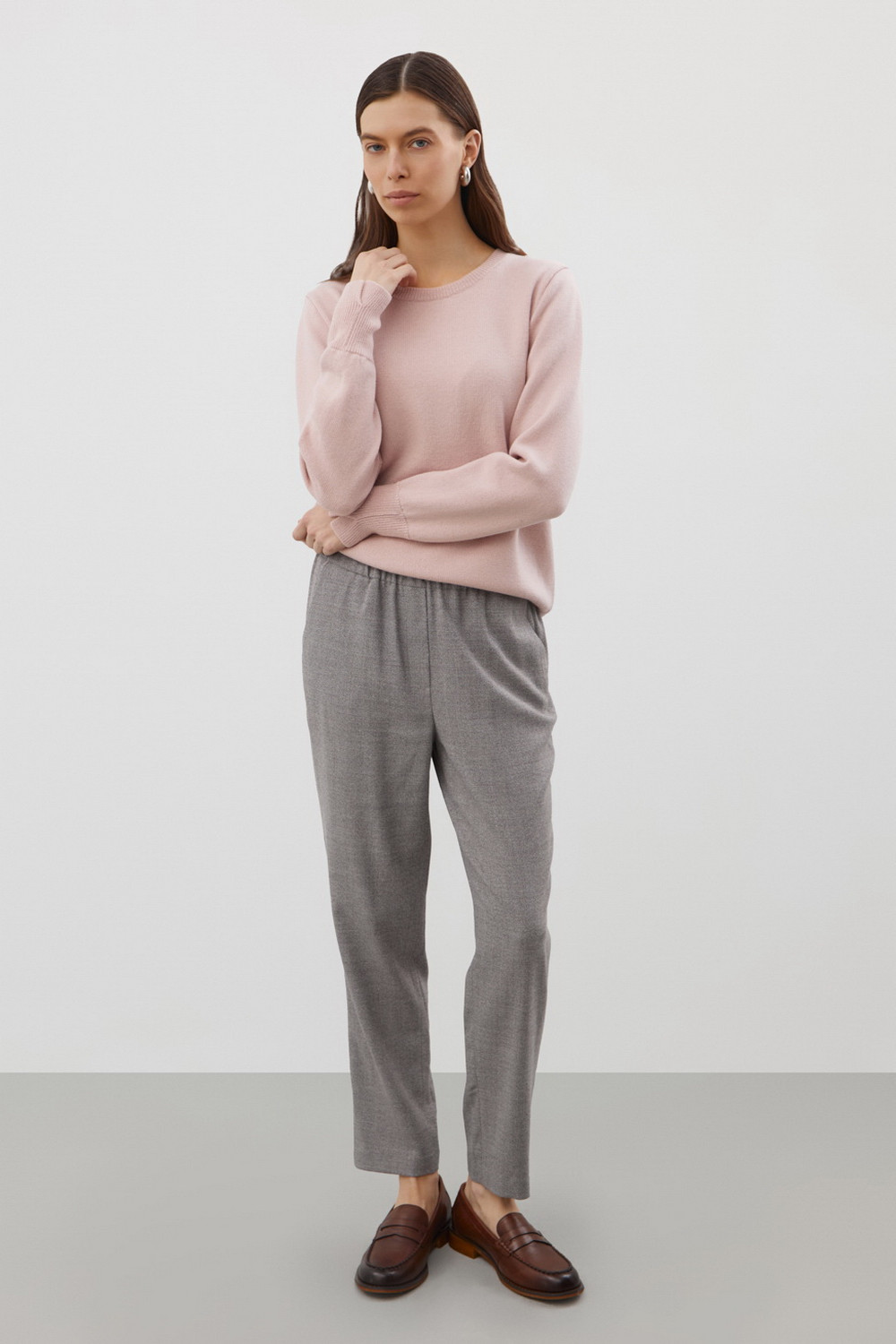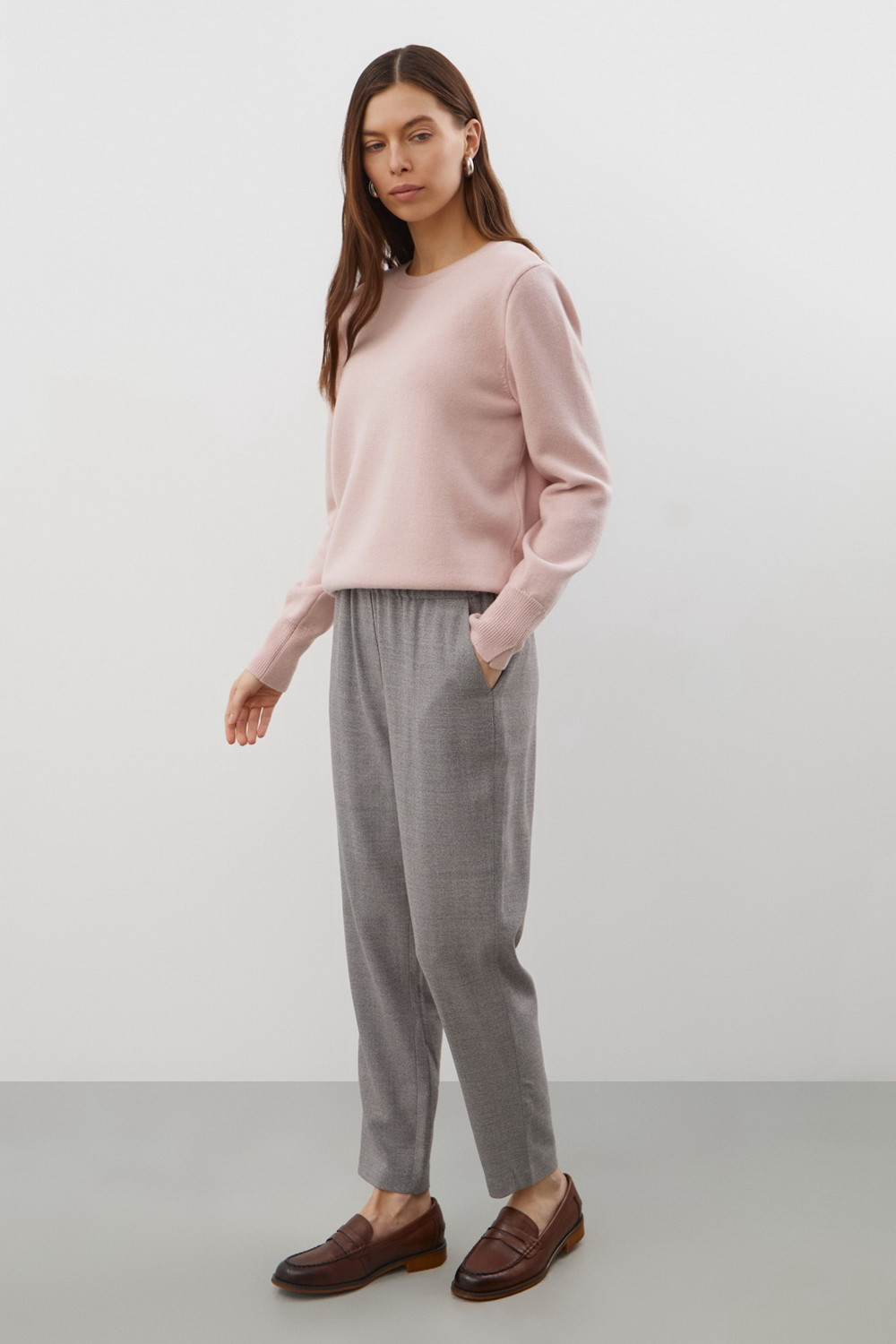 Брюки женские. Зауженный силуэт помогает визуально удлинить ноги и подчеркивает женственные формы. При этом мягкий и дышащий материал гарантирует свободу движений, а эластичный пояс обеспечивает идеальную посадку.