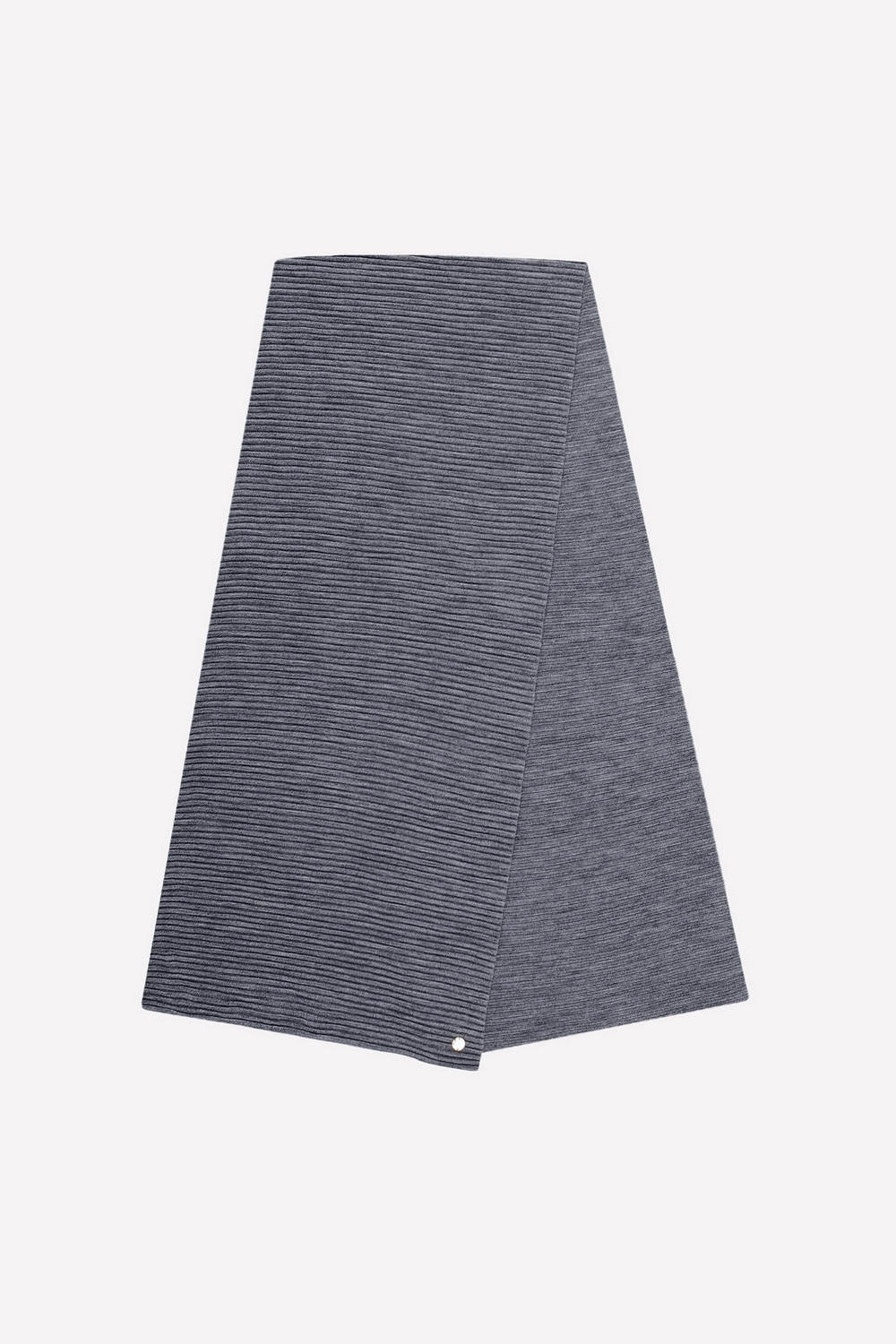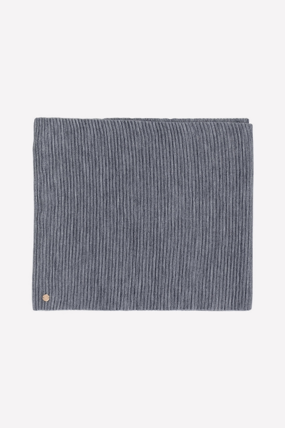 Однотонный вязаный шарф. Связан резинкой. Украшен металлическим значком с тиснёнными буквами VN и фирменной этикеткой.