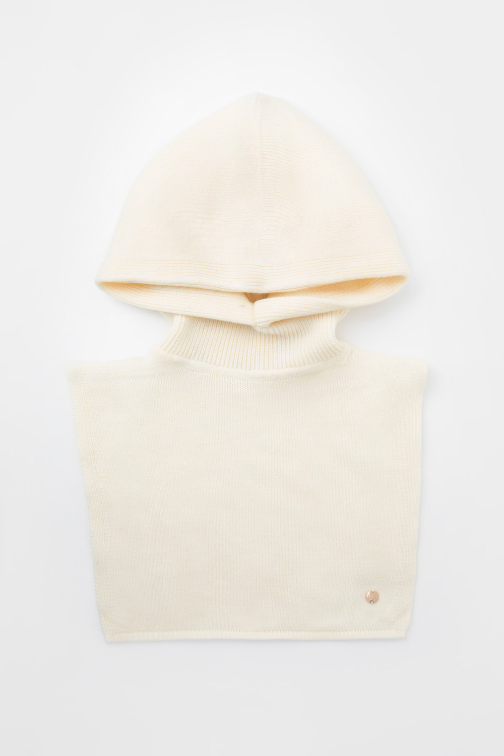 Теплый вязаный капор с глубоким капюшоном из шерсти и акрила. Шерсть в составе хорошо удерживает тепло, а волокна акрила делают изделие мягким и предотвращают деформацию и появление катышек. Лаконичный крой хорошо сочетается с верхней одеждой.