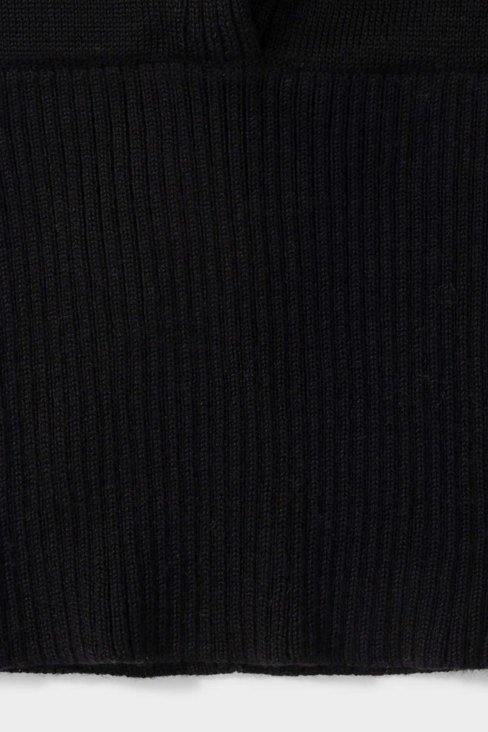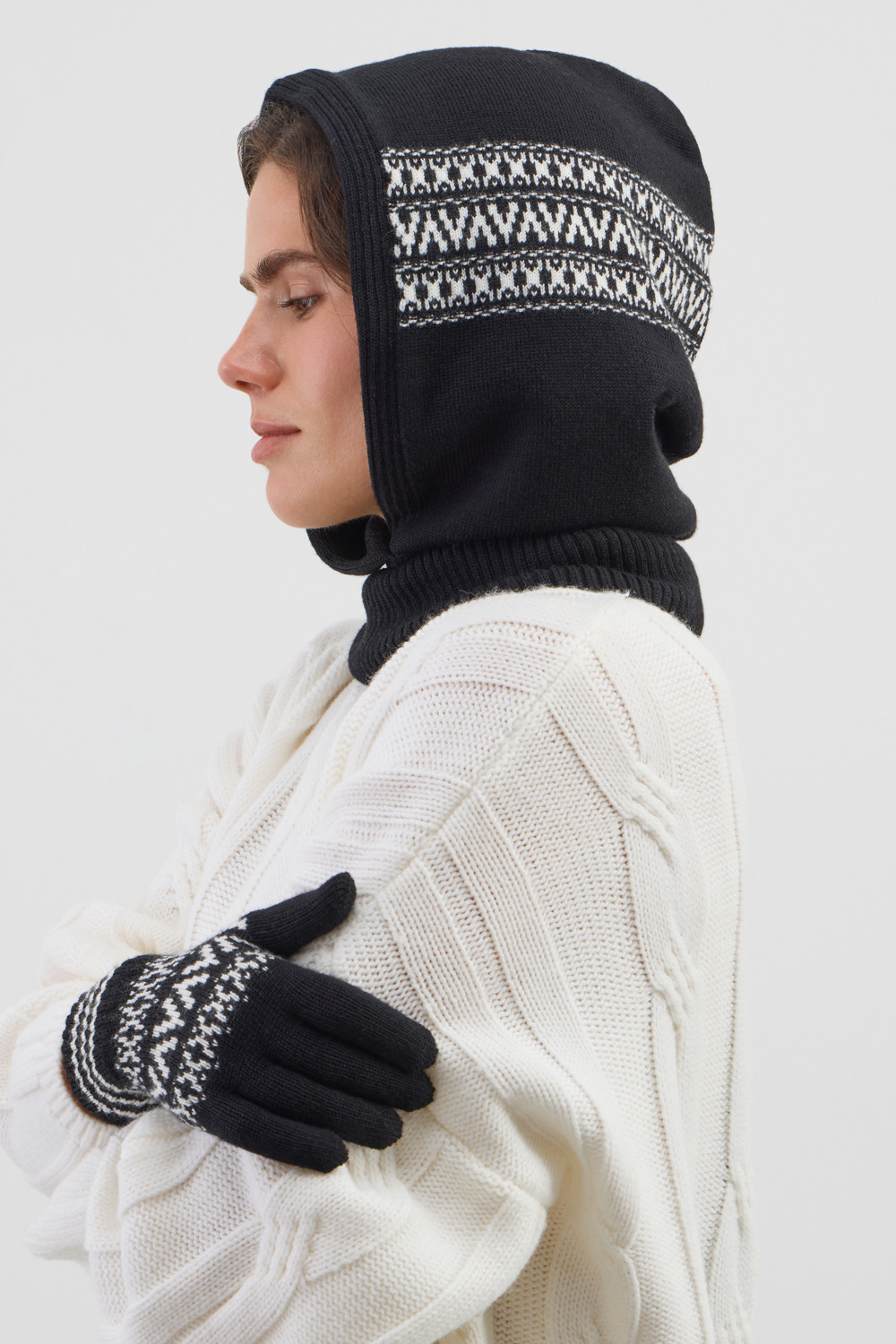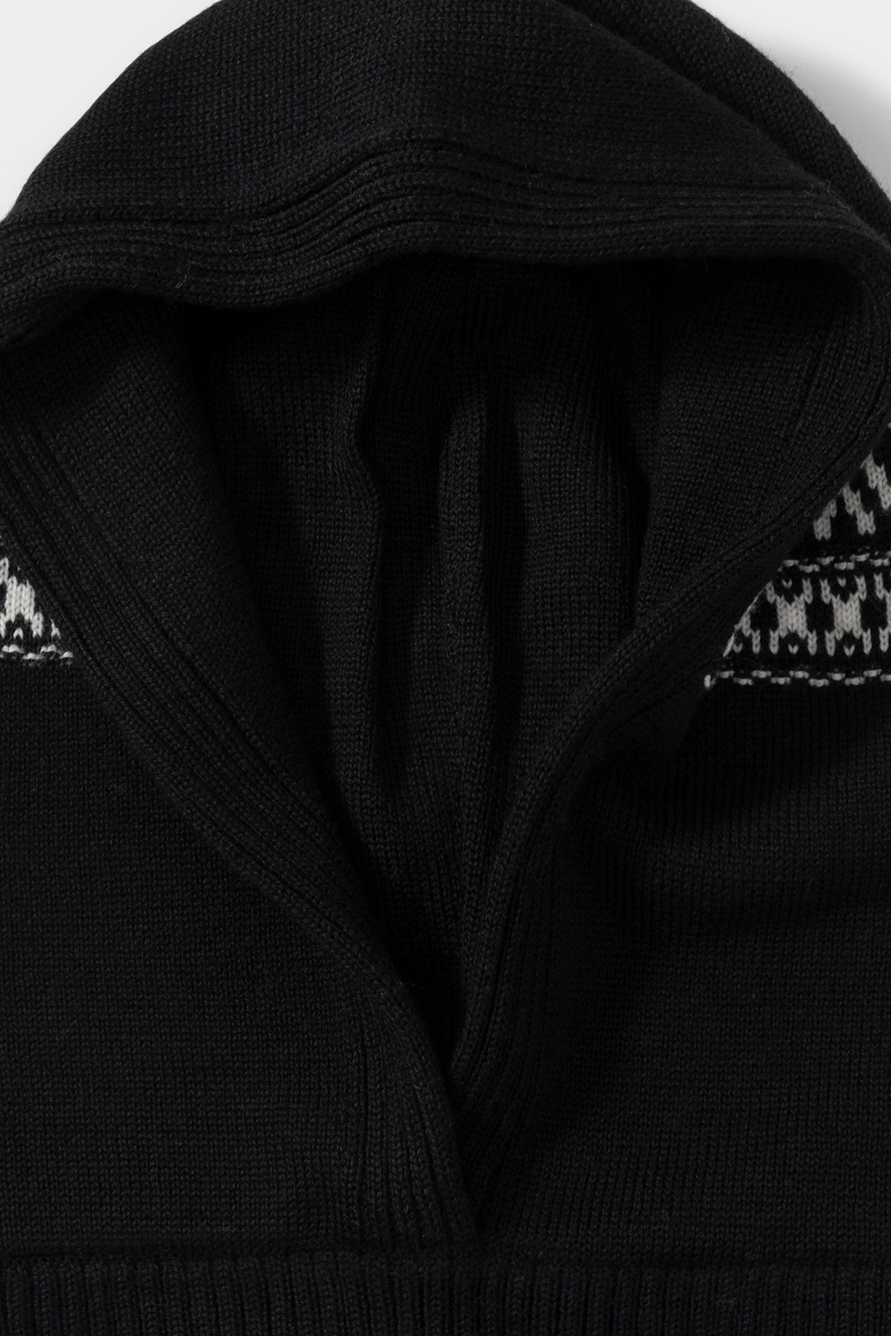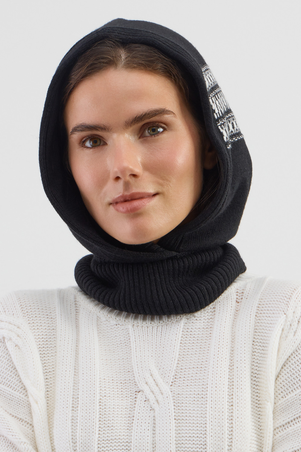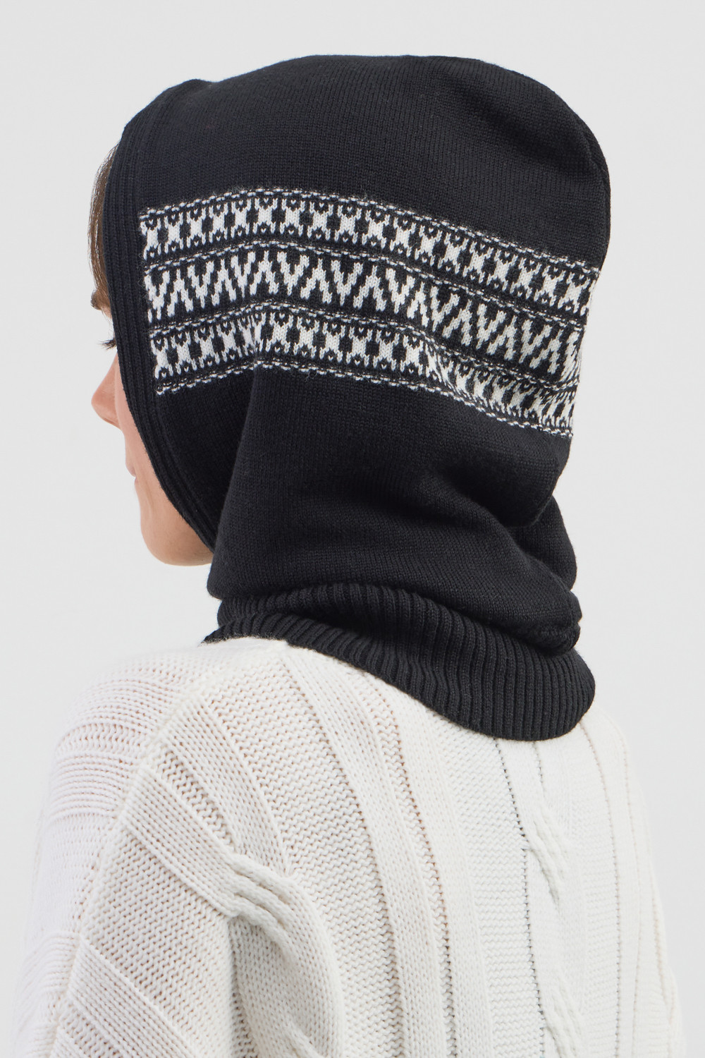 Теплый вязаный капор с глубоким капюшоном из шерсти и акрила. Шерсть в составе хорошо удерживает тепло, а волокна акрила делают изделие мягким и предотвращают деформацию. Лаконичный крой хорошо сочетается с верхней одеждой.