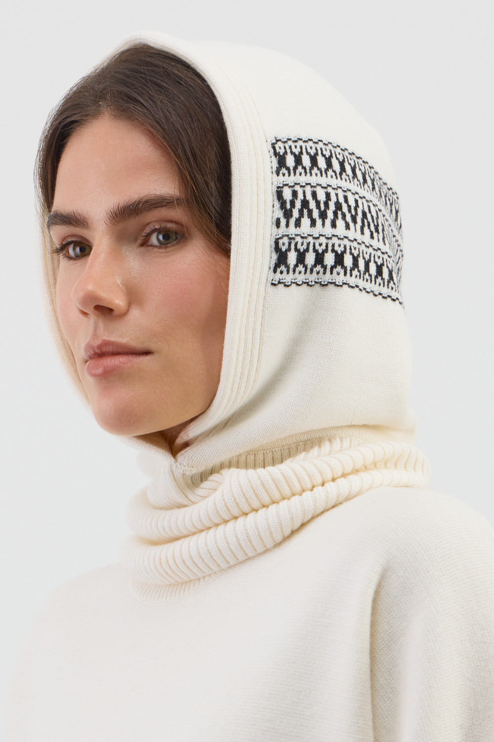 Теплый вязаный капор с глубоким капюшоном из шерсти и акрила. Шерсть в составе хорошо удерживает тепло, а волокна акрила делают изделие мягким и предотвращают деформацию. Лаконичный крой хорошо сочетается с верхней одеждой.