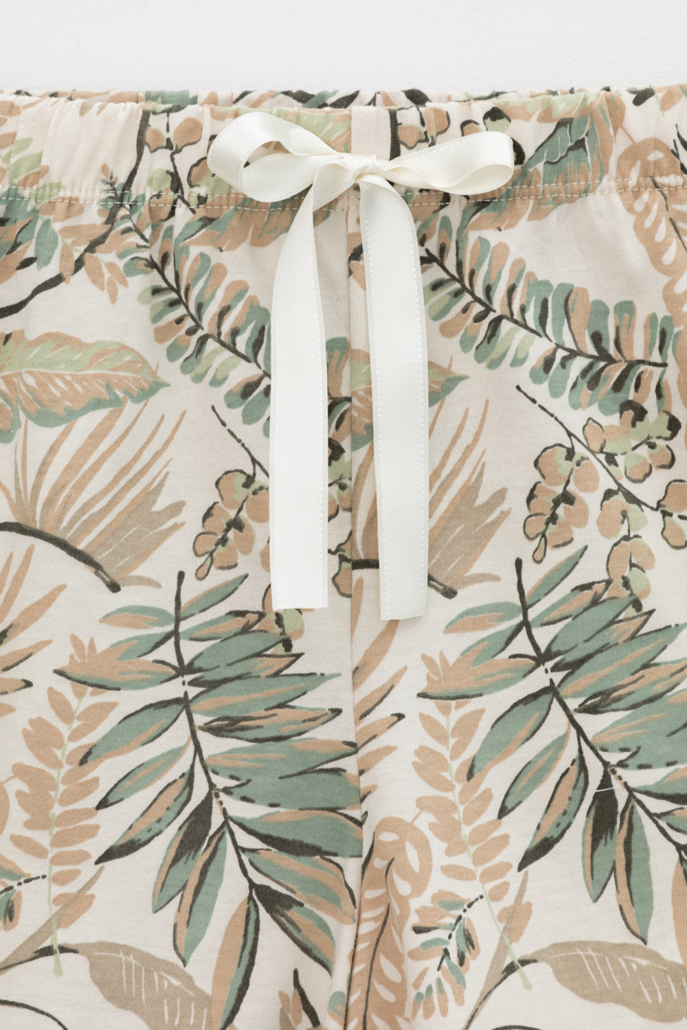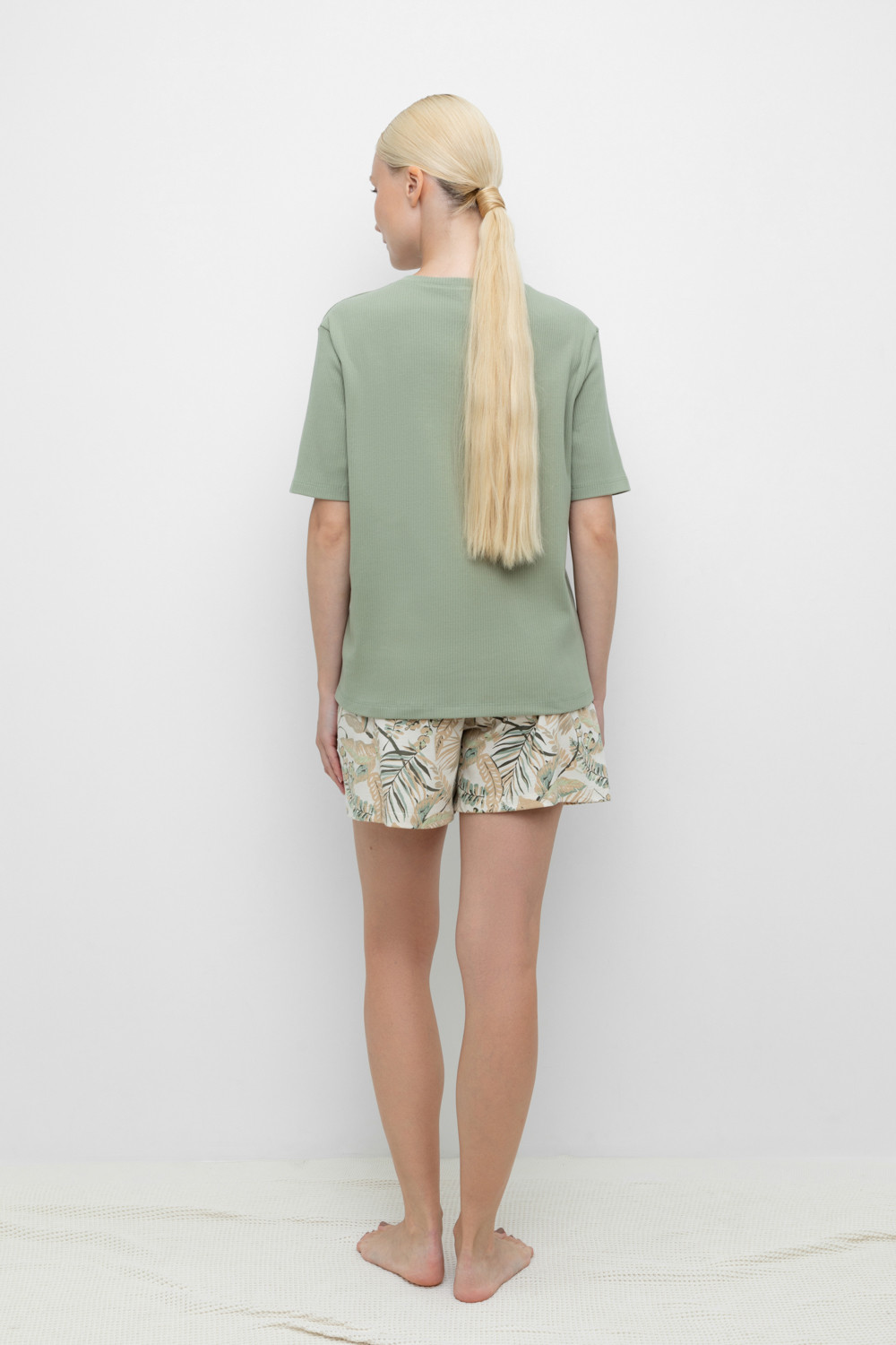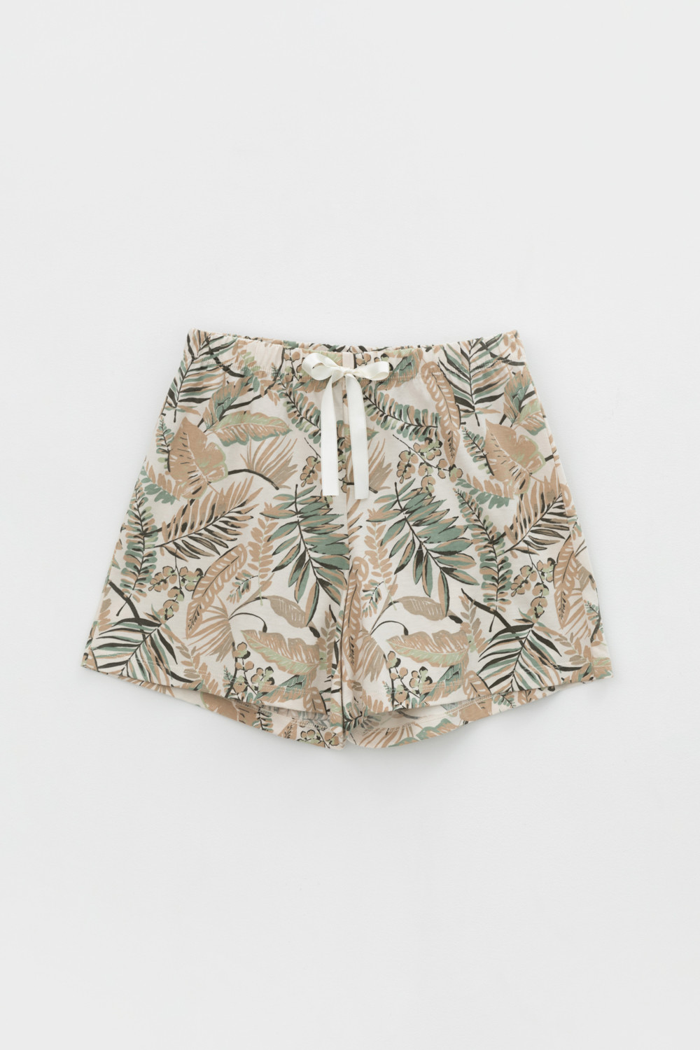 Лёгкие комфортные шорты из набивного трикотажа супрем. Пояс на резинке регулируется по ширине с помощью атласной ленты. Низ изделия обработан плоскими швами. Гладкий материал приятен к телу, не теряет форму и позволяет коже дышать.