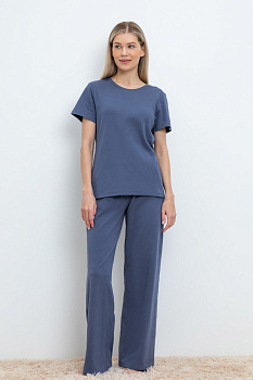 Лёгкие комфортные брюки из трикотажа с добавлением лайкры. Модель с поясом на резинке. Низ изделия обработан плоскими швами. Гладкий материал приятен к телу, не теряет форму и позволяет коже дышать.