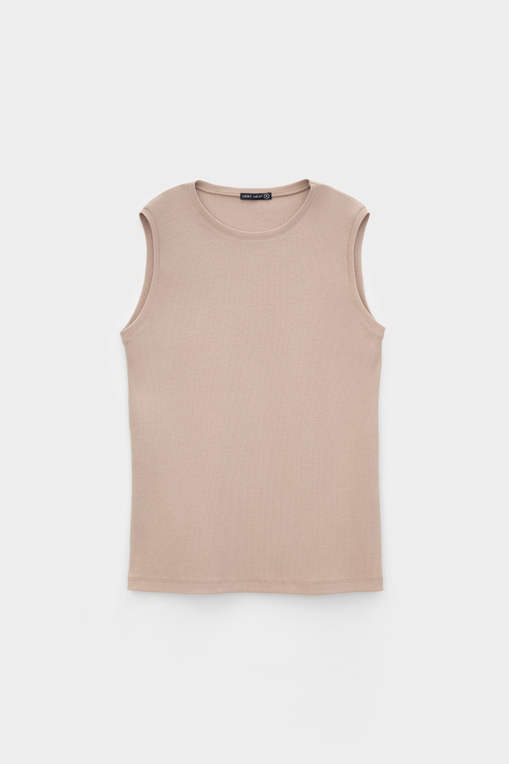 Базовая майка из трикотажного полотна в рубчик с добавлением эластана.