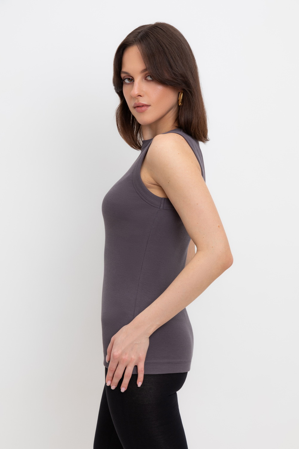 Базовая майка из трикотажного полотна в рубчик с добавлением эластана.