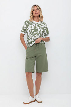 Мягкие женские шорты на резинке с удобными карманами из футера трехнитки. Пояс утягивается по ширине круглым шнуром. Низ обработан плоскими швами.