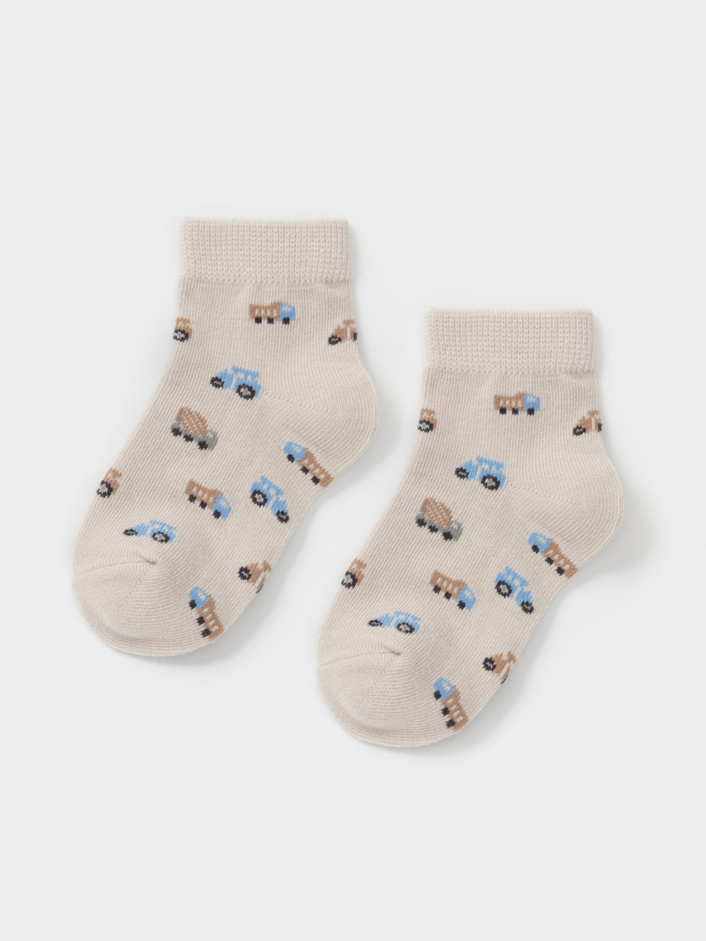 Носки короткие детские с формованной пяткой и эластичной резинкой по краю. Украшены рисунком. Изделие сохраняет форму и стойкий цвет после многочисленных стирок.