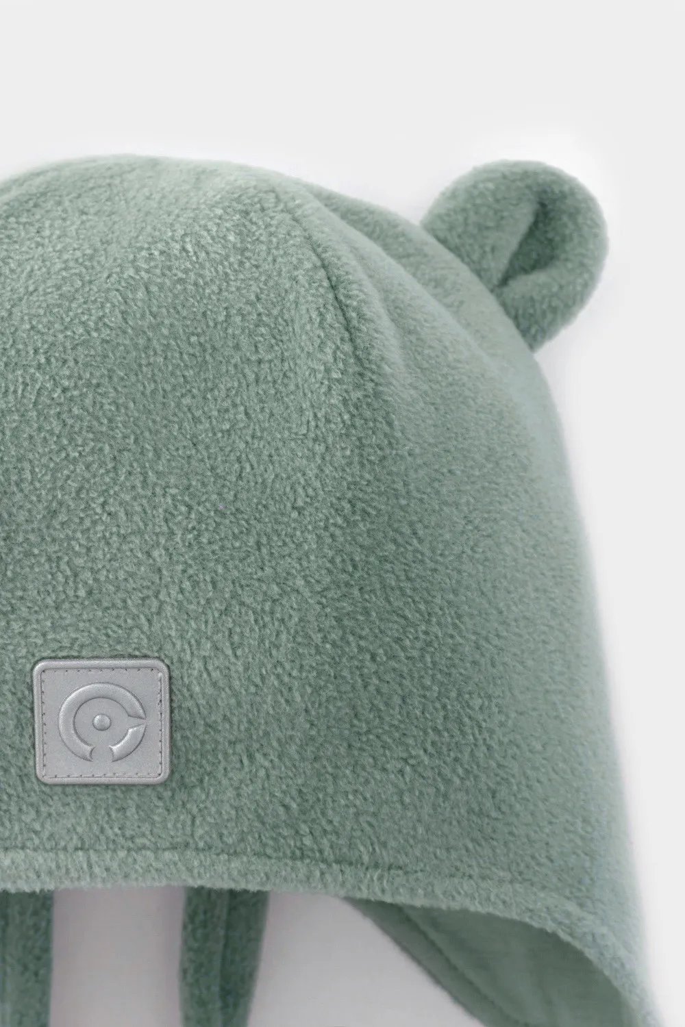Флисовая шапка на завязках с мягким подкладом из натурального хлопка. Сверху украшена декоративными ушками из флиса. Спереди прикреплён светоотражатель, который обеспечивает дополнительную безопасность в тёмное время суток. Шапка сохраняет цвет и форму после многократных стирок.