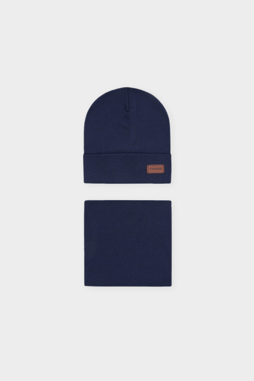 Комплект для мальчика: шапка и снуд из хлопкового трикотажа в рубчик с добавлением эластана, окрашенного стойкими гипоаллергенными текстильными красителями. Изделия хорошо тянутся, после многократных стирок сохраняют цвет и форму.