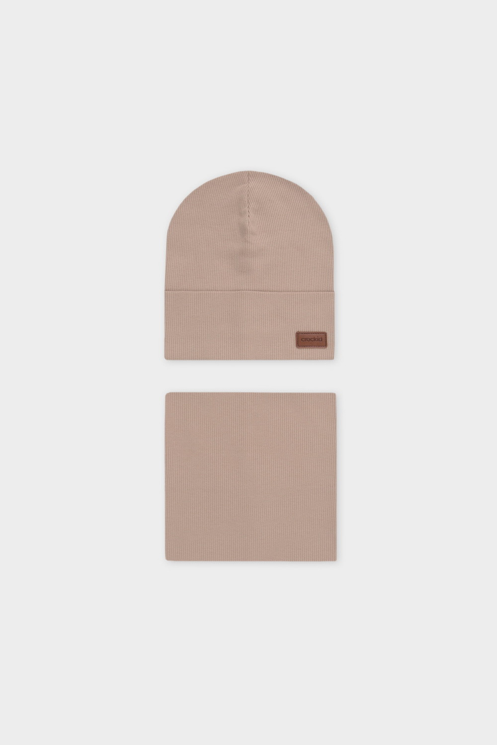 Комплект для мальчика: шапка и снуд из хлопкового трикотажа в рубчик с добавлением эластана, окрашенного стойкими гипоаллергенными текстильными красителями. Изделия хорошо тянутся, после многократных стирок сохраняют цвет и форму.