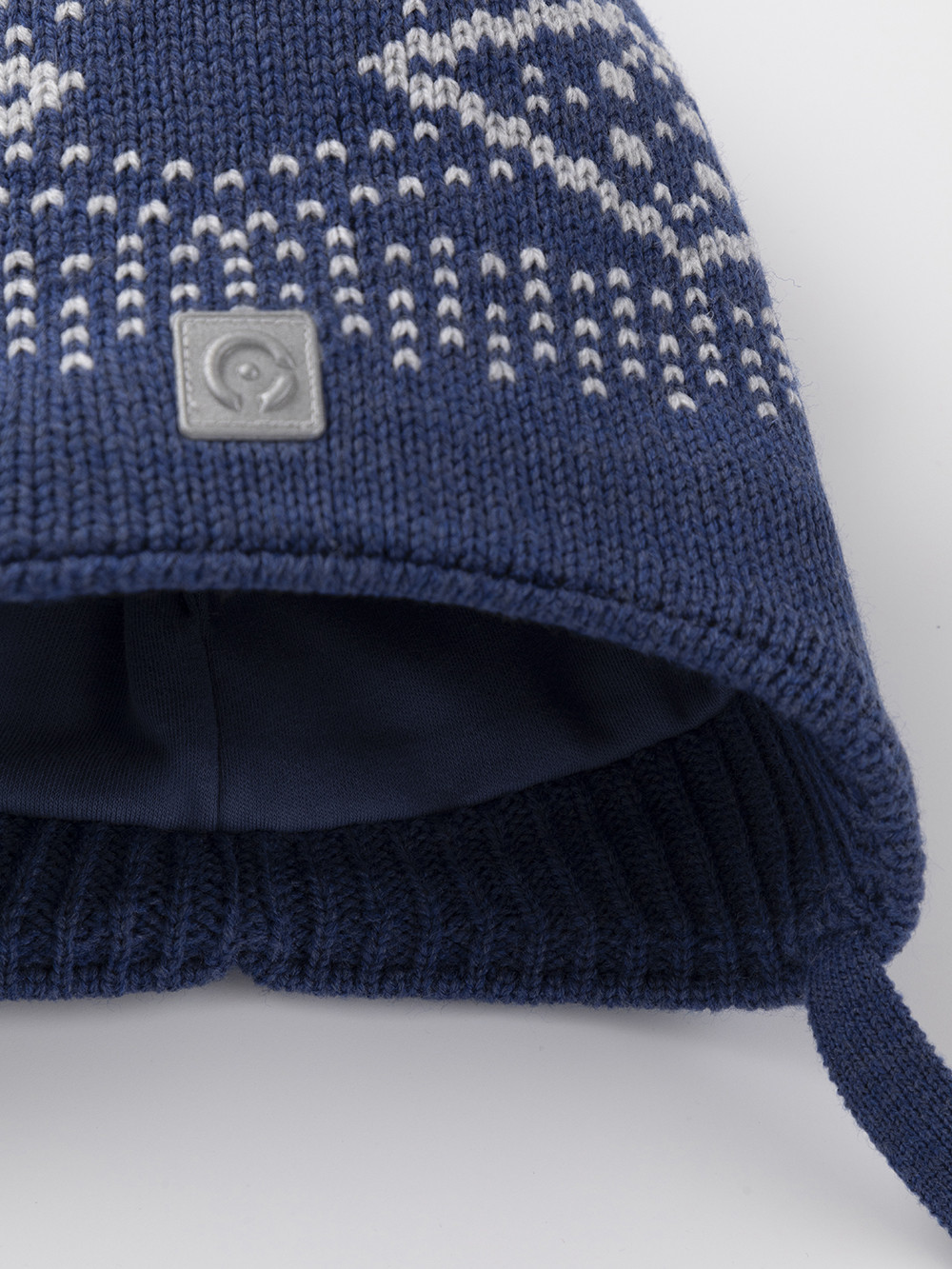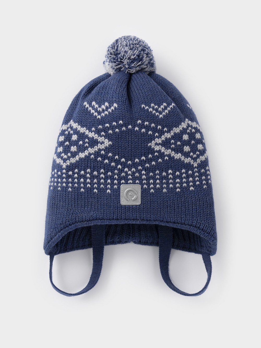 Шапка из полушерсти на завязках с синтепоновым утеплителем. Подклад из натурального хлопка. Полностью закрывает голову, уши и шею, защищая ребёнка от холодного воздуха и ветра. На макушке помпон. Изделие сохраняет форму и стойкий цвет после многочисленных стирок.