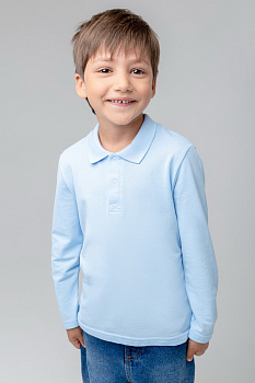 Джемпер поло с длинными рукавами для мальчика из трикотажного  полотна пике. Вязаный воротник. Удобная застежка спереди. По бокам разрезы, обработанные киперной лентой.