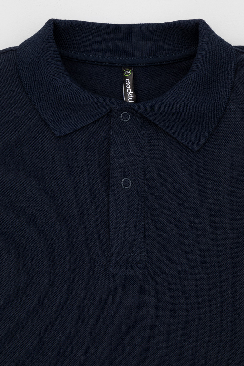 Джемпер поло с длинными рукавами для мальчика из трикотажного полотна пике. Вязаный воротник. Удобная застежка спереди. По бокам разрезы, обработанные киперной лентой.