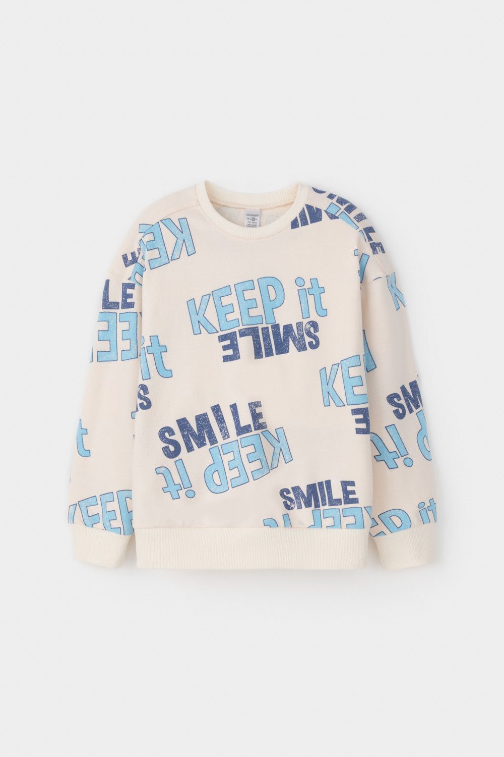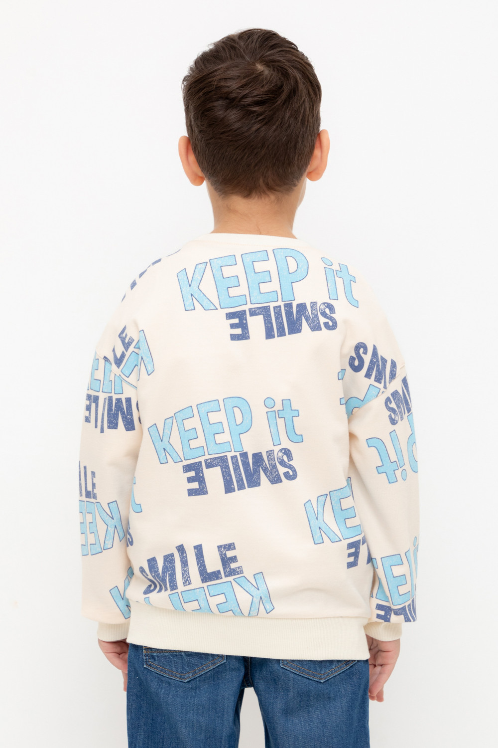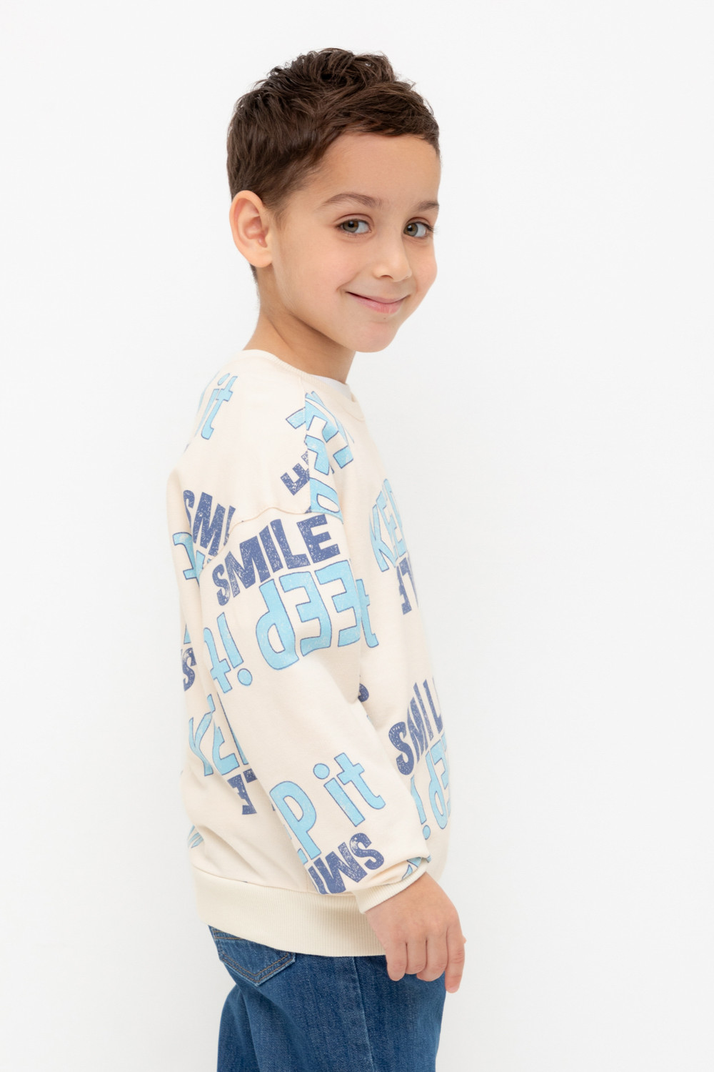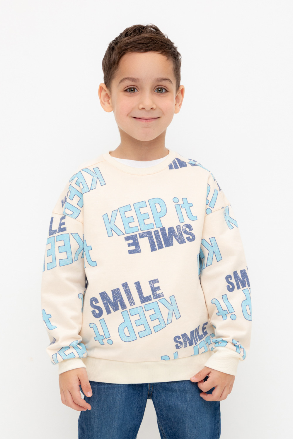 Джемпер для мальчика из высококачественного петельчатого футера. Обтачка горловины, манжеты и пояс выполнены из эластичного полотна. Оригинальная набивка выполнена из стойких текстильных гипоаллергенных красителей.