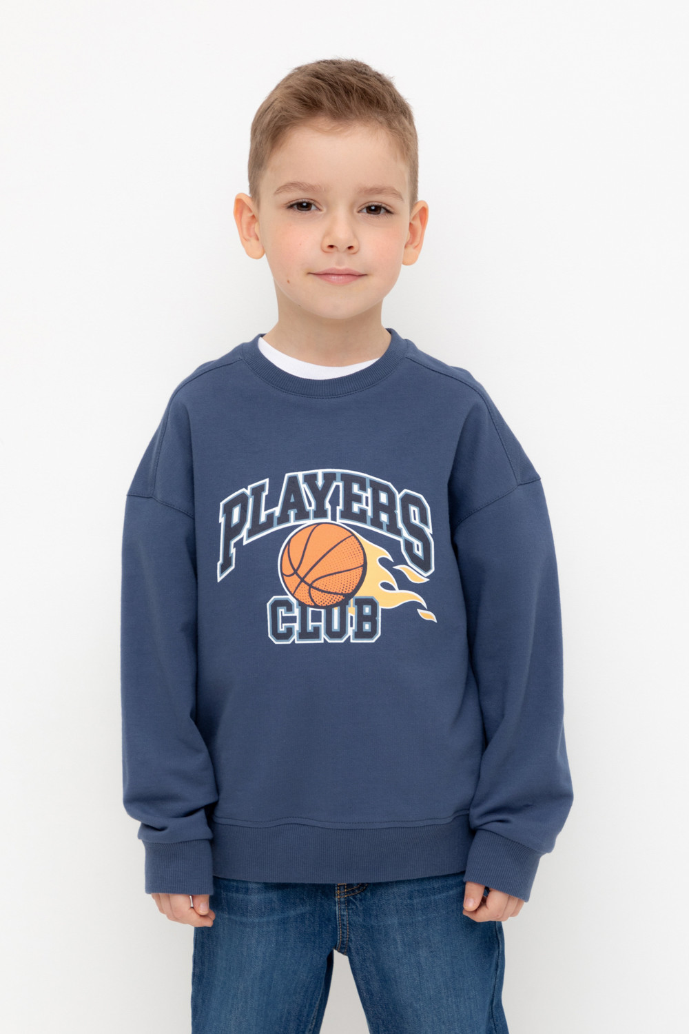 Джемпер для мальчика из высококачественного петельчатого футера.  Обтачка горловины, манжеты и пояс выполнены из эластичного полотна. Оригинальный принт нанесён с помощью стойких текстильных гипоаллергенных красителей.
