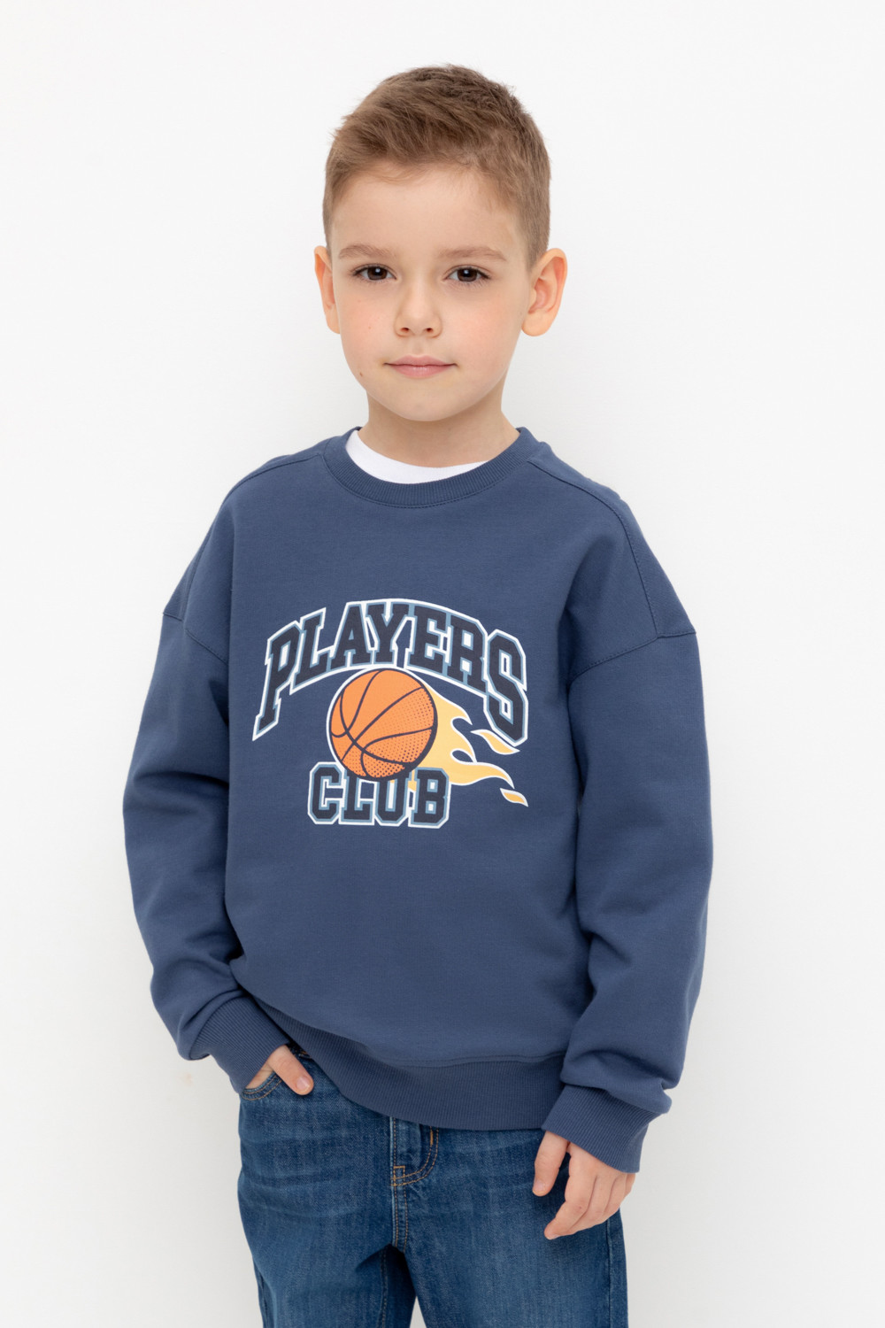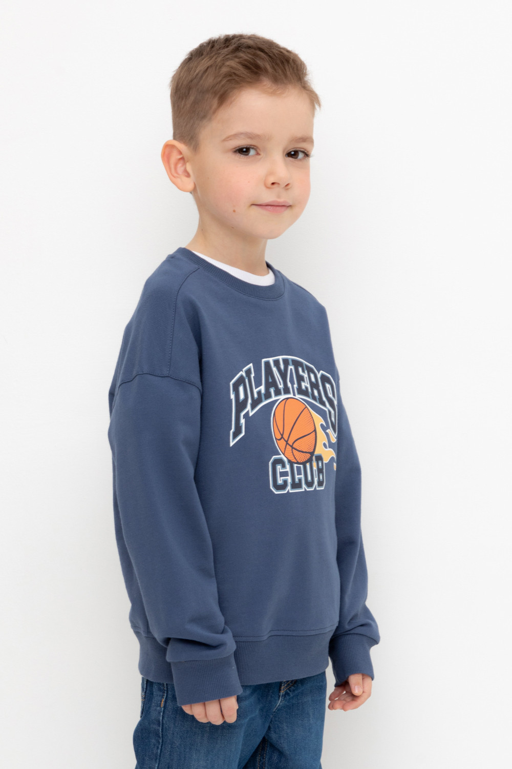 Джемпер для мальчика из высококачественного петельчатого футера.  Обтачка горловины, манжеты и пояс выполнены из эластичного полотна. Оригинальный принт нанесён с помощью стойких текстильных гипоаллергенных красителей.