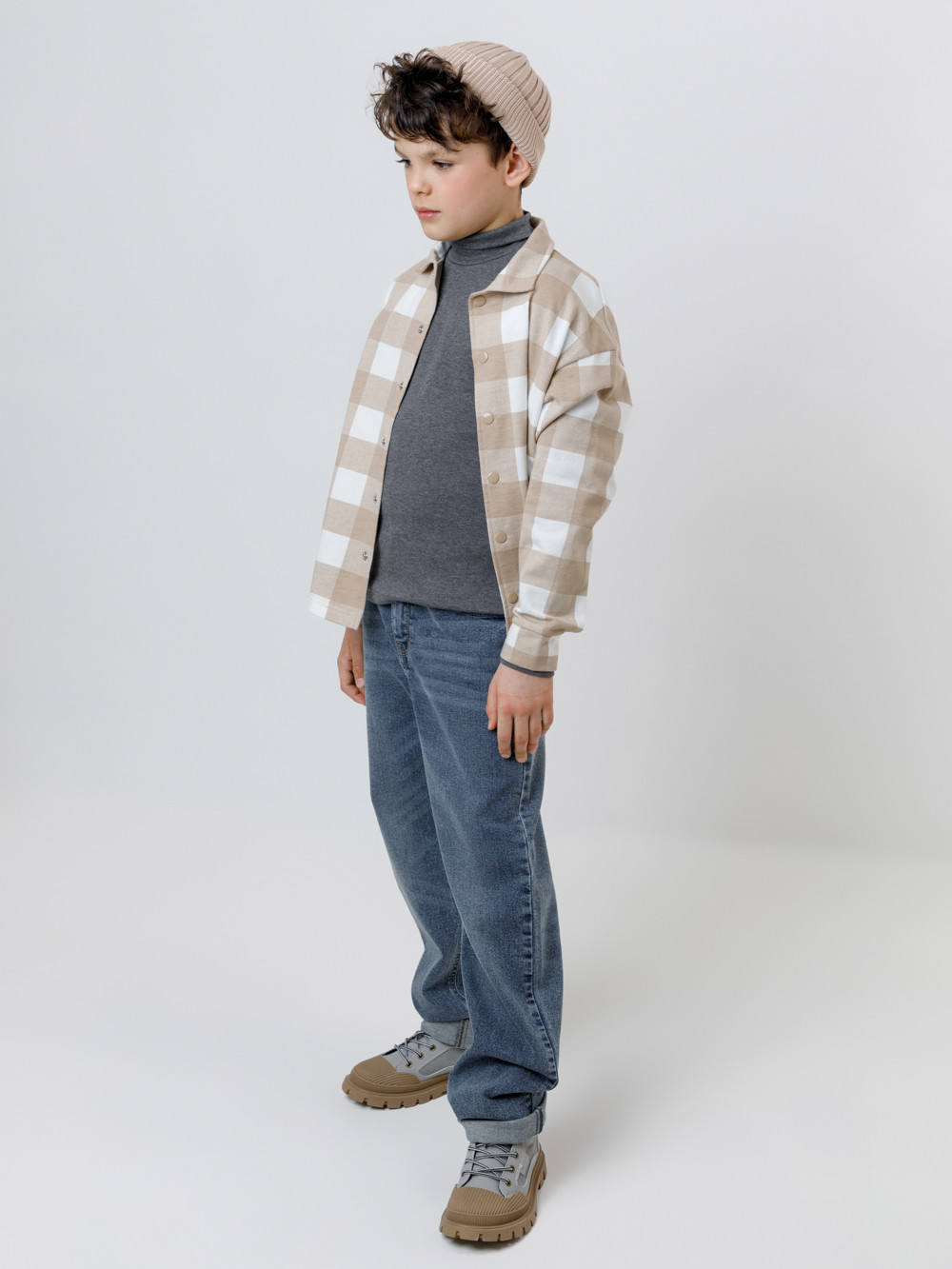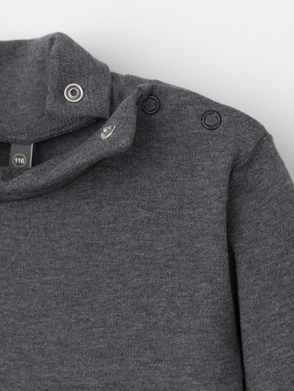 Однотонная водолазка с длинными рукавами. Выполнена из мягкого трикотажа интерлок. Высокое горло застёгивается на кнопки и защищает шею от переохлаждения.