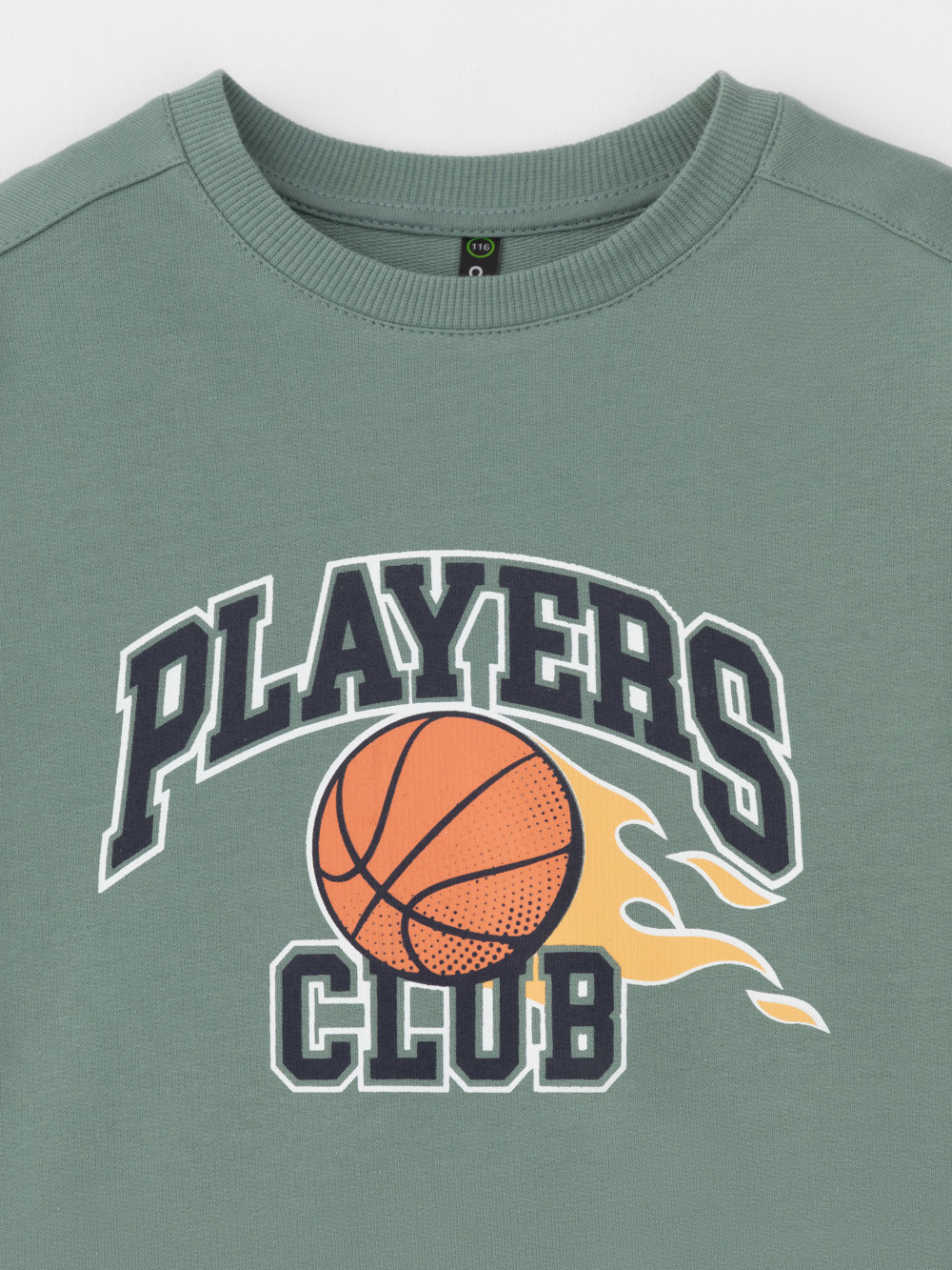 Джемпер для мальчика из высококачественного петельчатого футера.  Обтачка горловины, манжеты и пояс выполнены из эластичного полотна. Оригинальный принт нанесён с помощью стойких текстильных гипоаллергенных красителей.