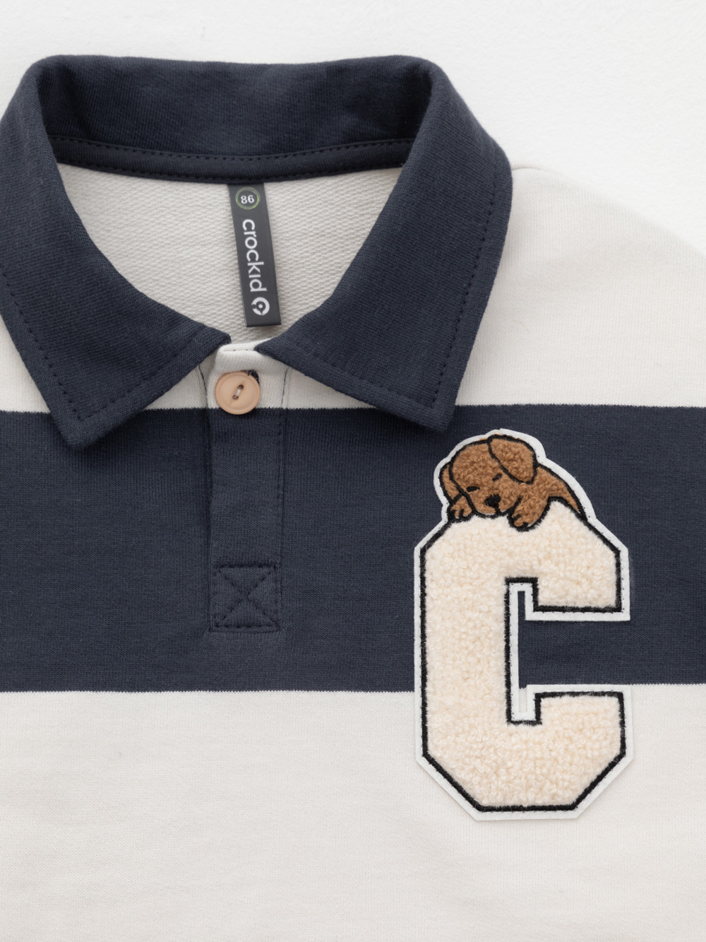 Свитшот с воротником для мальчика. Изготовлен из высококачественного петельчатого футера. Манжеты и пояс выполнены из эластичного полотна. На груди застёжка на пуговицу. Изделие сохраняет цвет и форму после многократных стирок.