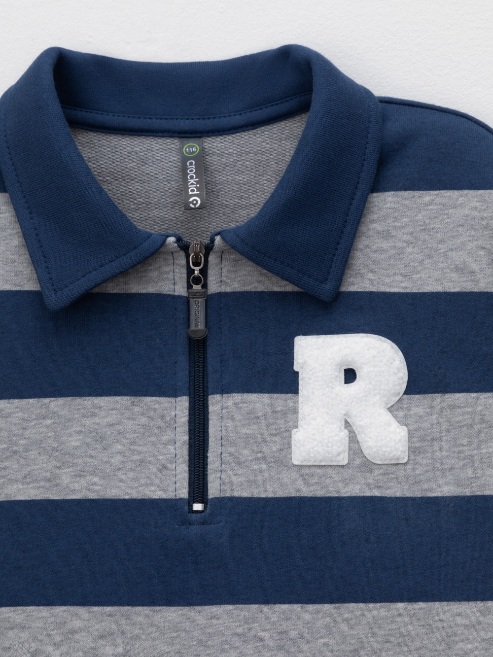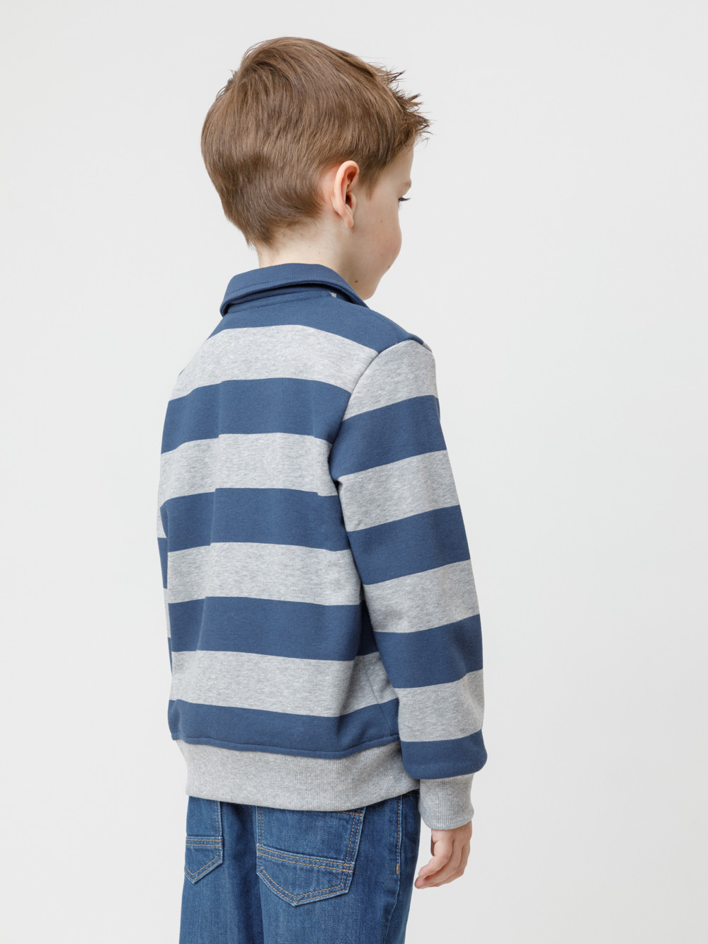 Свитшот с воротником для мальчика. Изготовлен из высококачественного петельчатого футера. В составе 80% натурального хлопка и 20% полиэстера, при этом полиэстер ввязан внутрь по особой технологии и не соприкасается с кожей. Манжеты и пояс выполнены из эластичного полотна. На груди короткая застёжка на молнию. Оригинальный рисунок выполнен из стойких текстильных гипоаллергенных красителей. Изделие сохраняет цвет и форму после многократных стирок.
