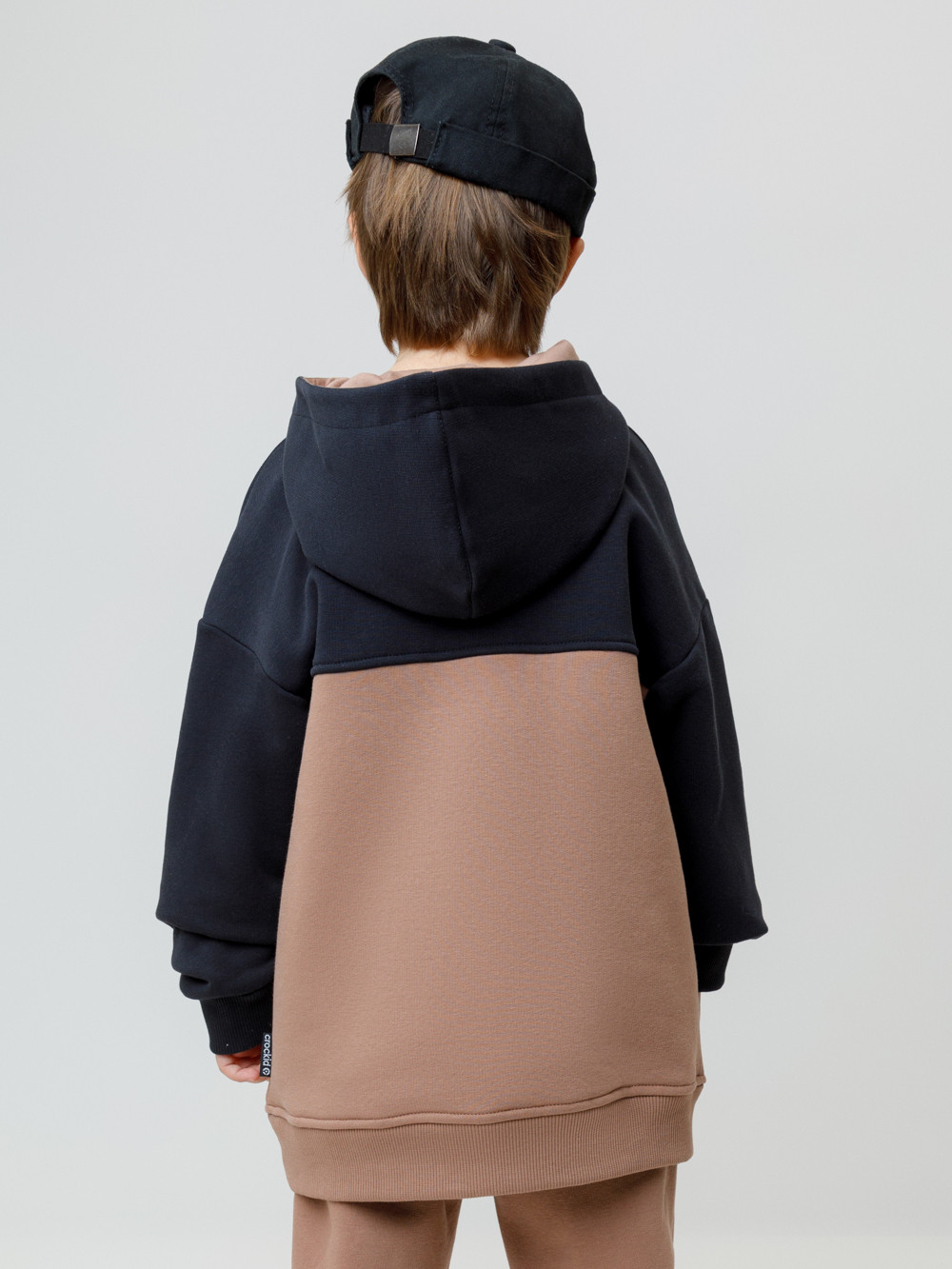 Худи с капюшоном для мальчика из тёплого футера с начёсом. Пояс и манжеты выполнены из мягкого эластичного трикотажа. Спереди карманы. Худи сохраняет форму и стойкий цвет после многочисленных стирок и идеально подходит на каждый день. Оригинальный принт выполнен из стойких текстильных гипоаллергенных красителей. Все трикотажные полотна производятся в соответствии с нормами швейцарского сертификата ЭкоТекс.