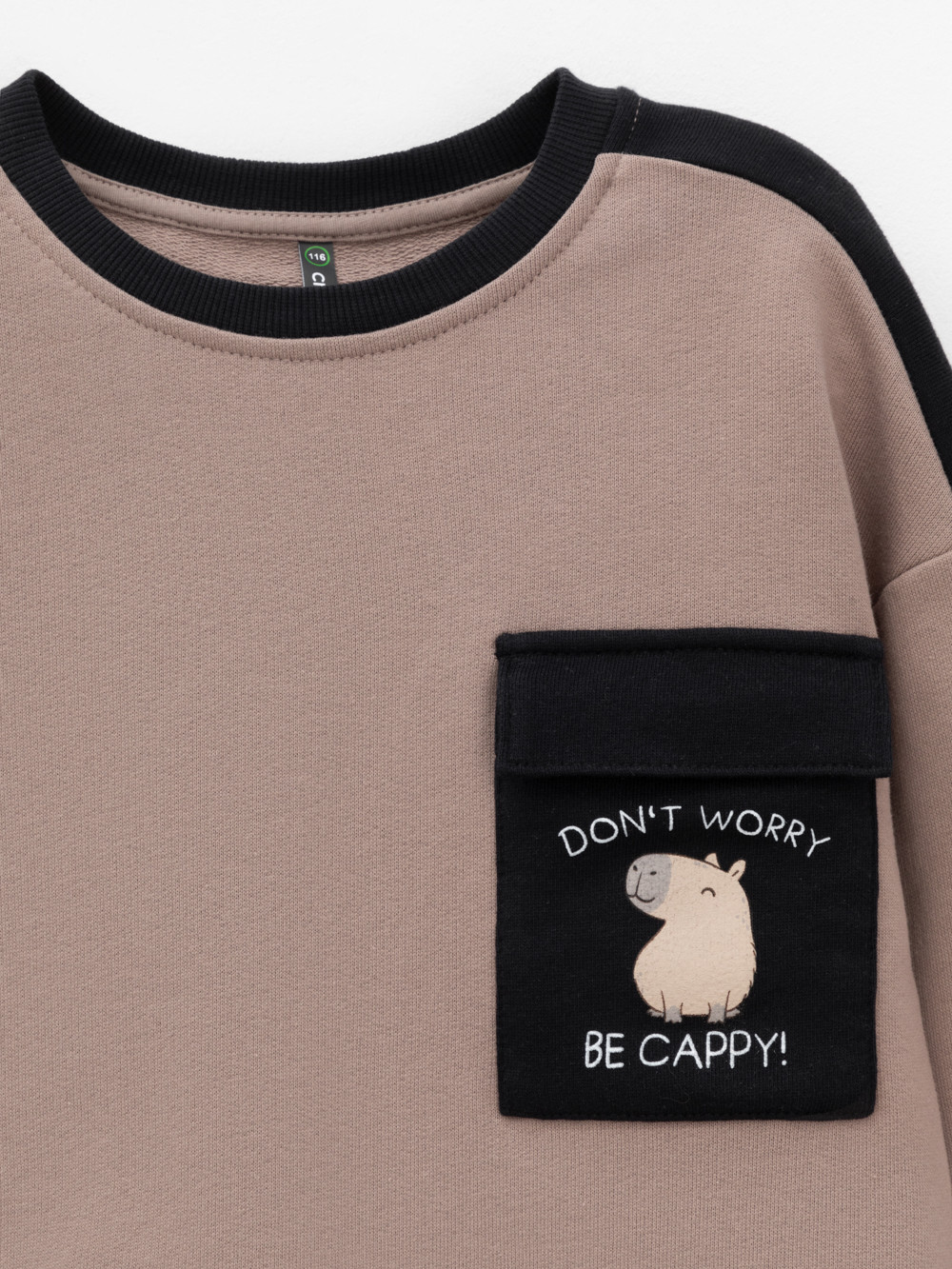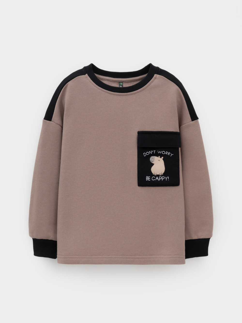 Свитшот для мальчика из высококачественного петельчатого футера. Обтачка горловины и манжеты выполнены из эластичного полотна. Для удобства одевания имеется застёжка на кнопки в размерах 92 и 98. Оригинальный принт нанесён с помощью стойких текстильных гипоаллергенных красителей.