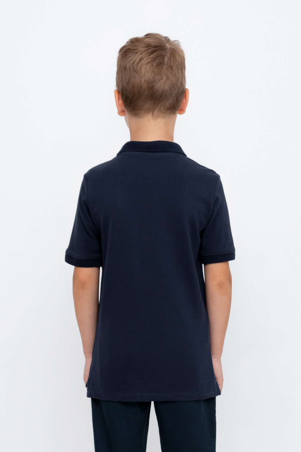 Поло для мальчика из высококачественного трикотажного полотна пике. У изделия вязаный воротник, манжеты и застежка спереди на пуговицы.