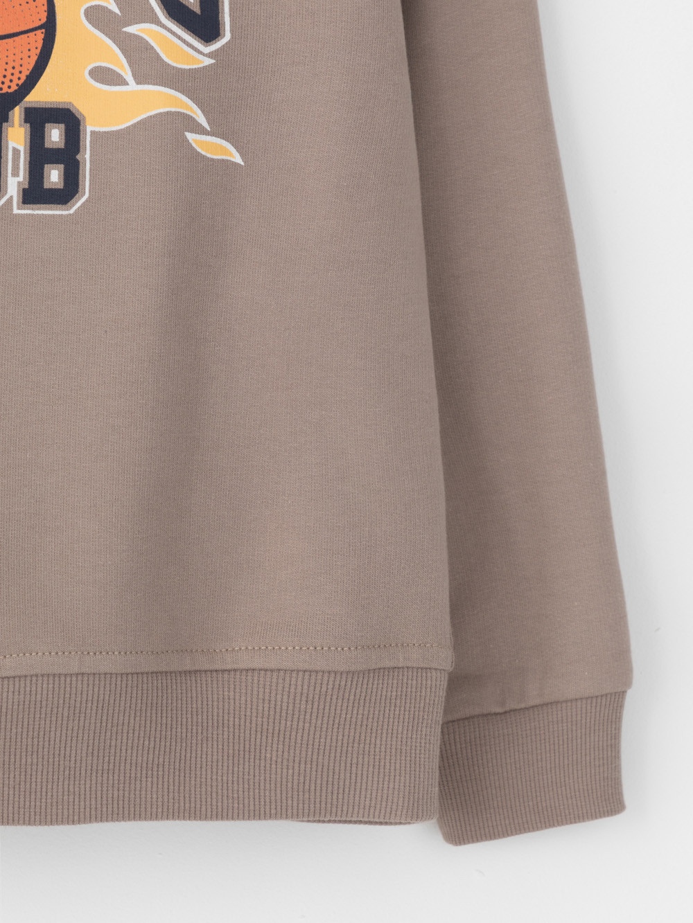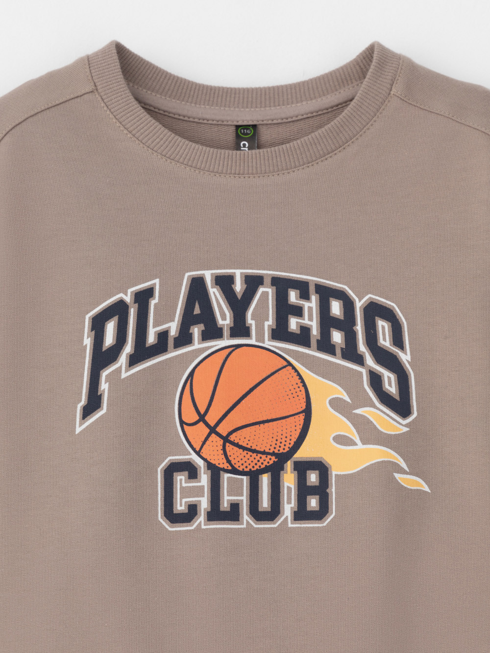 Джемпер для мальчика из высококачественного петельчатого футера.  Обтачка горловины, манжеты и пояс выполнены из эластичного полотна. Оригинальный принт нанесён с помощью стойких текстильных гипоаллергенных красителей.