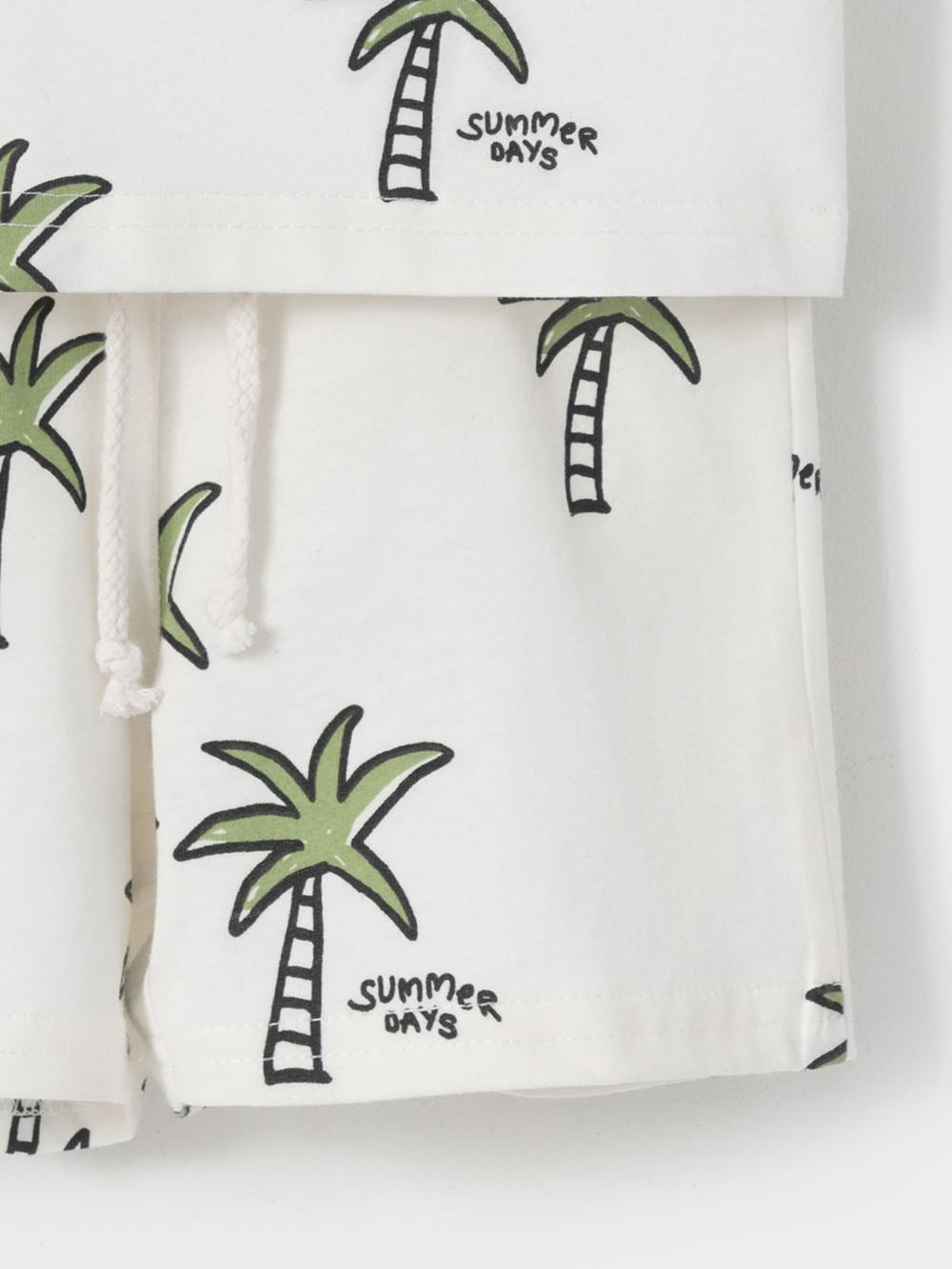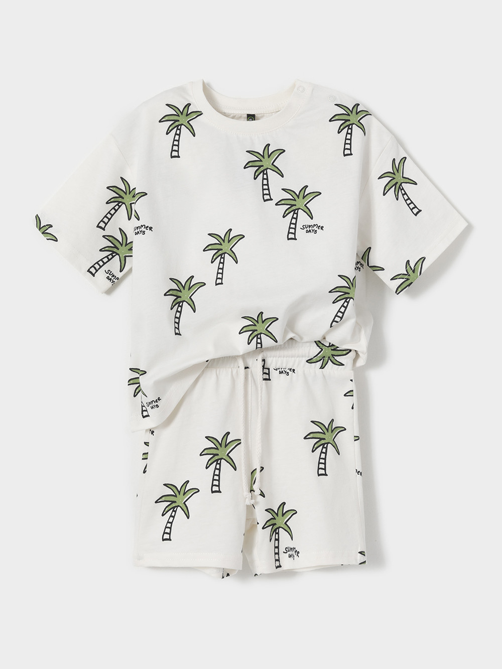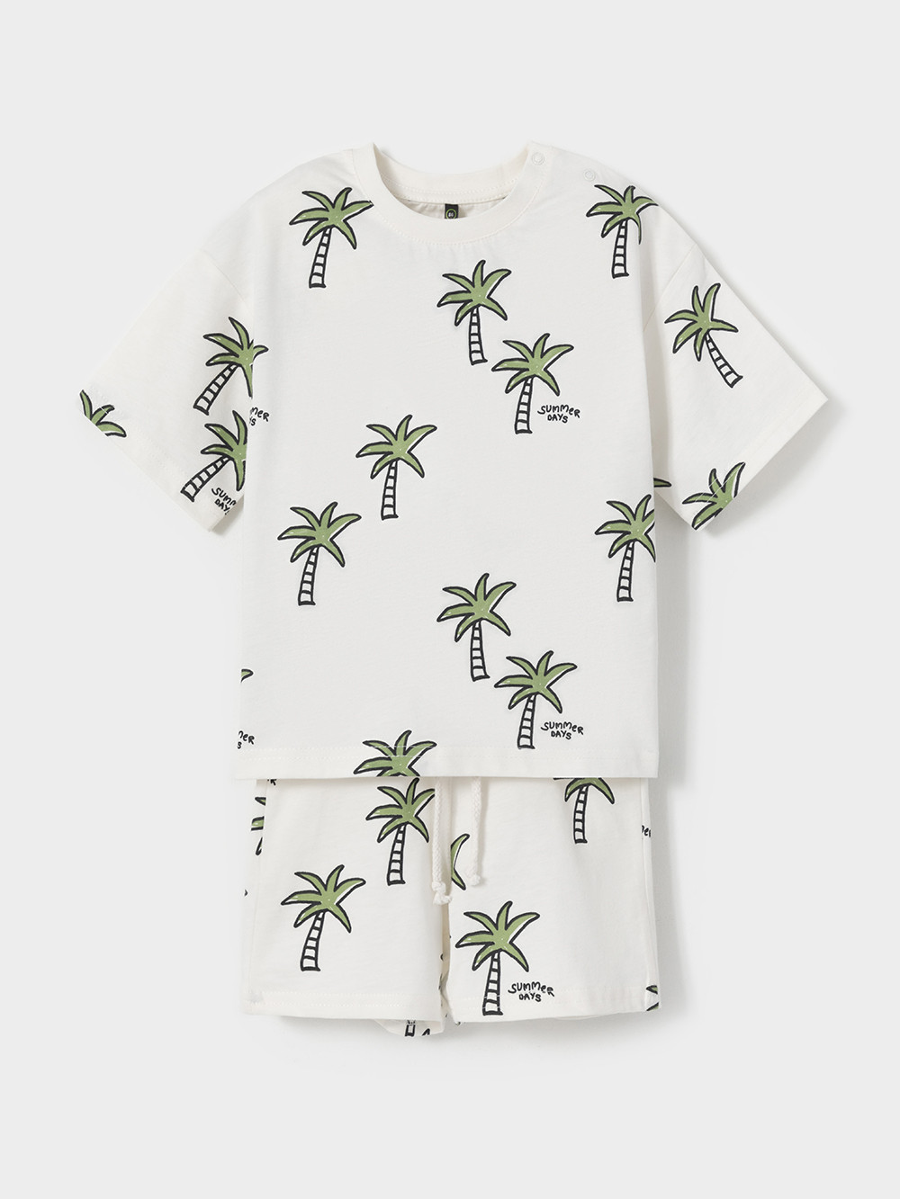 Набор трикотажный для мальчика: футболка с короткими рукавами и шорты на резинке. Комплект изготовлен из гладкого трикотажа супрем, который произведён из 100% натурального хлопка высокого качества. Изделия отлично дышат, а свободный крой не стесняет движения, поэтому футболка и шорты комфортны для активных игр, отдыха и занятий спортом. Футболка застёгивается на кнопки для удобства при одевании. Пояс регулируется по ширине при помощи шнурка. Набивной рисунок выполнен из стойких текстильных гипоаллергенных красителей. Комплект сохраняет цвет и форму после многократных стирок. Все трикотажные полотна производятся в соответствии с нормами швейцарского сертификата ЭкоТекс.