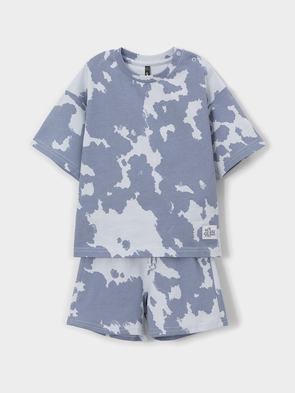 Набор трикотажный для мальчика: футболка с короткими рукавами и шорты на резинке. Комплект изготовлен из гладкого трикотажа супрем, который произведён из 100% натурального хлопка высокого качества. Изделия отлично дышат, а свободный крой не стесняет движения, поэтому футболка и шорты комфортны для активных игр, отдыха и занятий спортом. Футболка застёгивается на кнопки для удобства при одевании. Пояс регулируется по ширине при помощи шнурка. Набивной рисунок выполнен из стойких текстильных гипоаллергенных красителей. Комплект сохраняет цвет и форму после многократных стирок. Все трикотажные полотна производятся в соответствии с нормами швейцарского сертификата ЭкоТекс.
