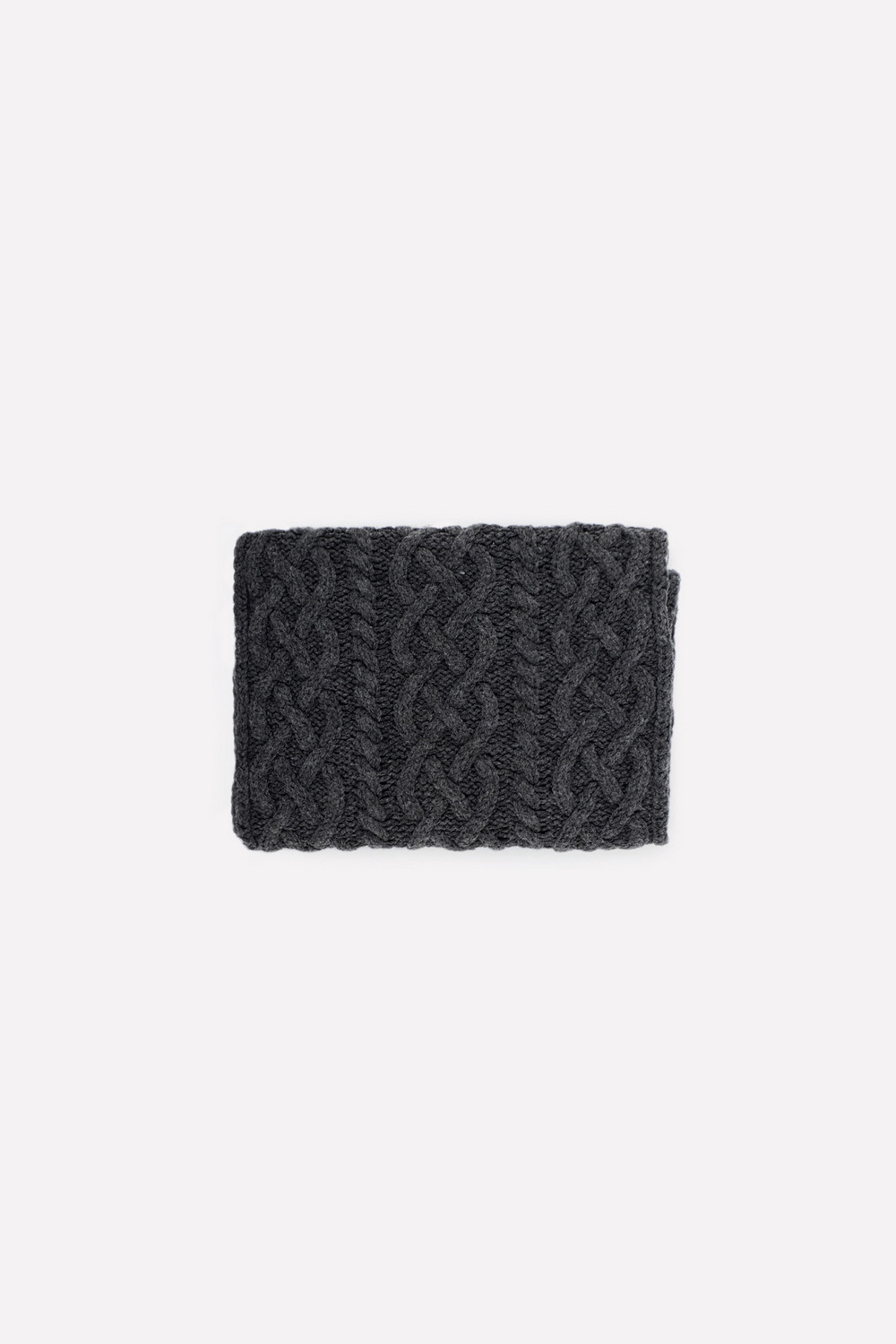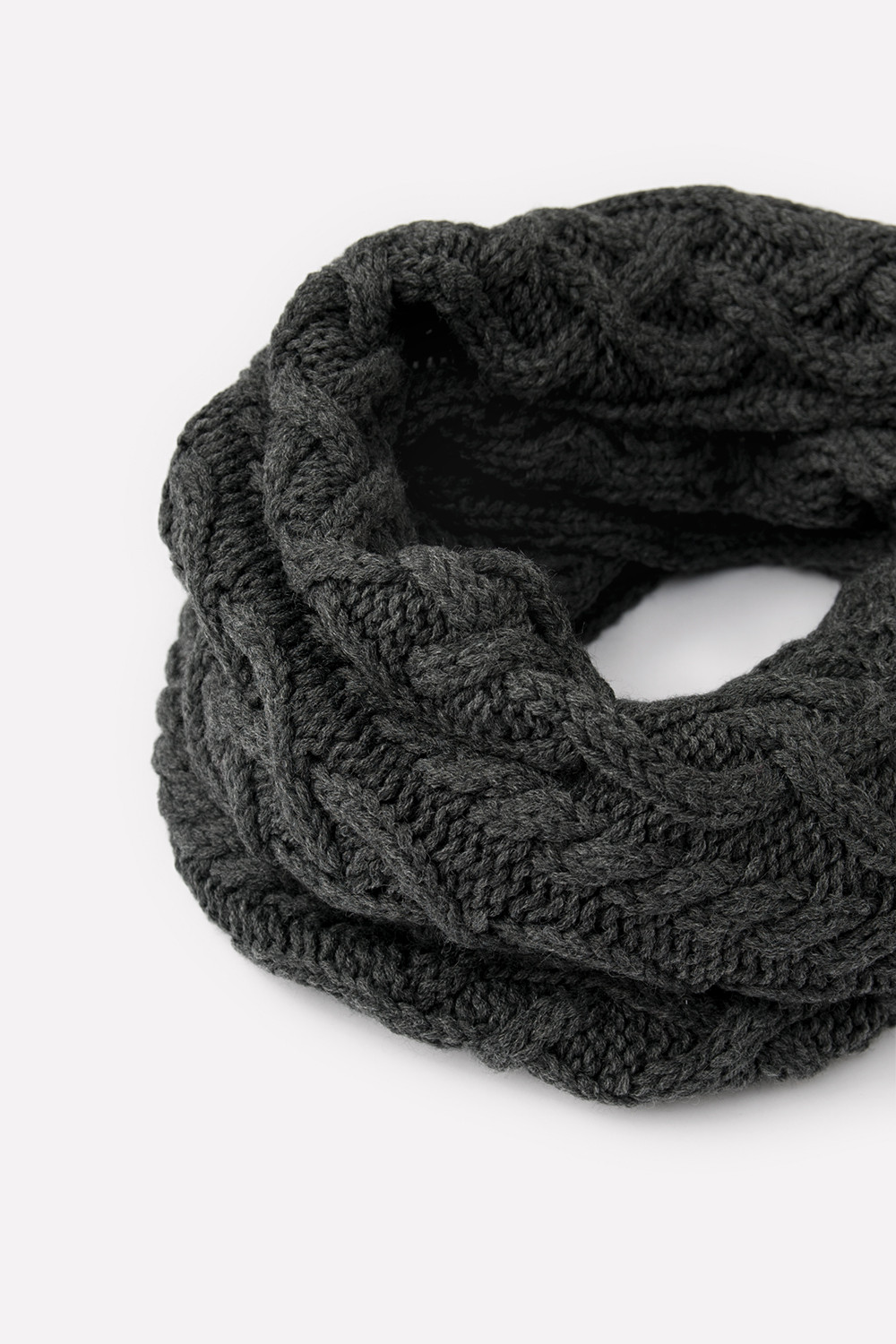 Стильный снуд из полушерсти с вязаным узором из кос. Защитит горло и согреет ребёнка во время прогулки.