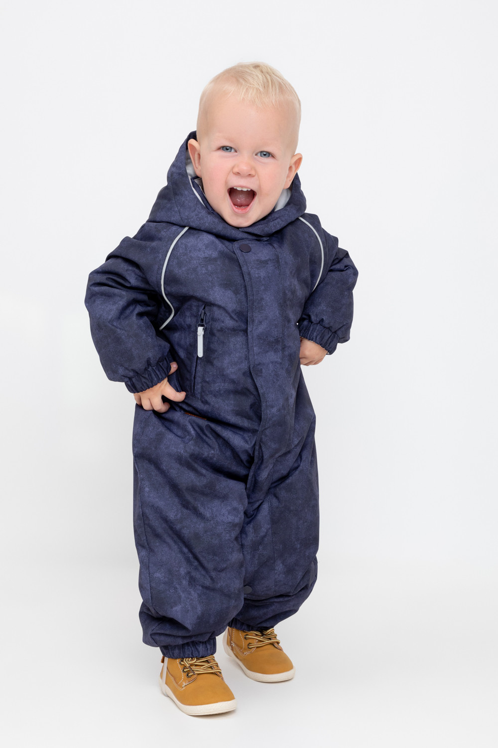 Демисезонный комбинезон ясельный с утеплителем SEE® 120 г/м2. Выполнен из мембранной ткани с дополнительной тефлоновой обработкой. Данный вид обработки предохраняет изделие от загрязнения и лучше отводит влагу. Подклад из 60% хлопка и 40% полиэстра. Удлиненная молния для легкого одевания с защитой подбородка. Ветрозащитная планка фиксируется на липучках и кнопках. Утяжка на капюшоне с потайными стопперами. По низу рукавов и брючин, а также на спинке изделия предусмотрена эластичная резинка для лучшего прилегания. Для фиксации комбинезона используются съемные силиконовые штрипки. В размерах 68-80 функциональные отвороты на рукавах и брючинах. Во всех изделиях верхнего ассортимента для безопасности ребенка предусмотрены светоотражающие элементы.