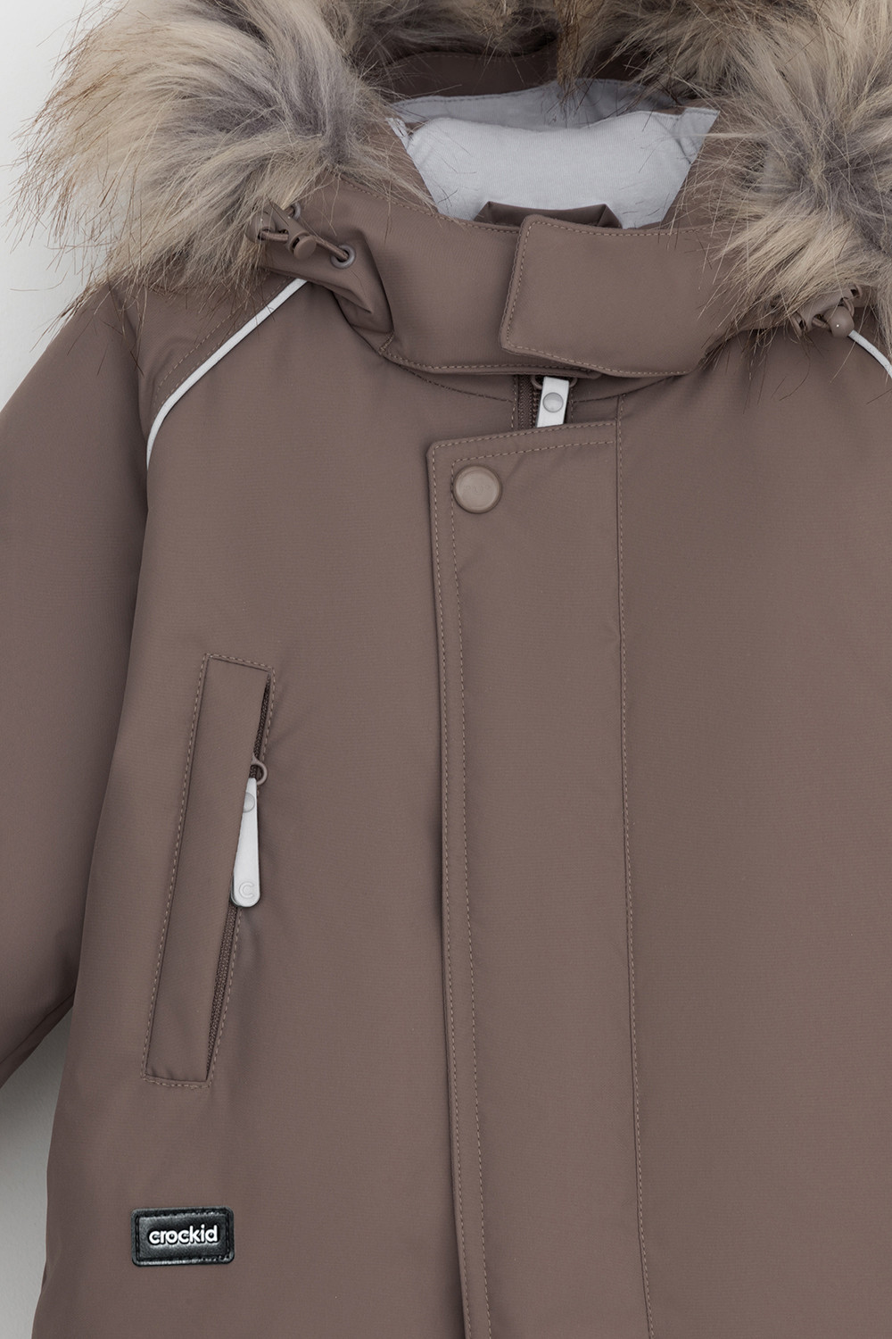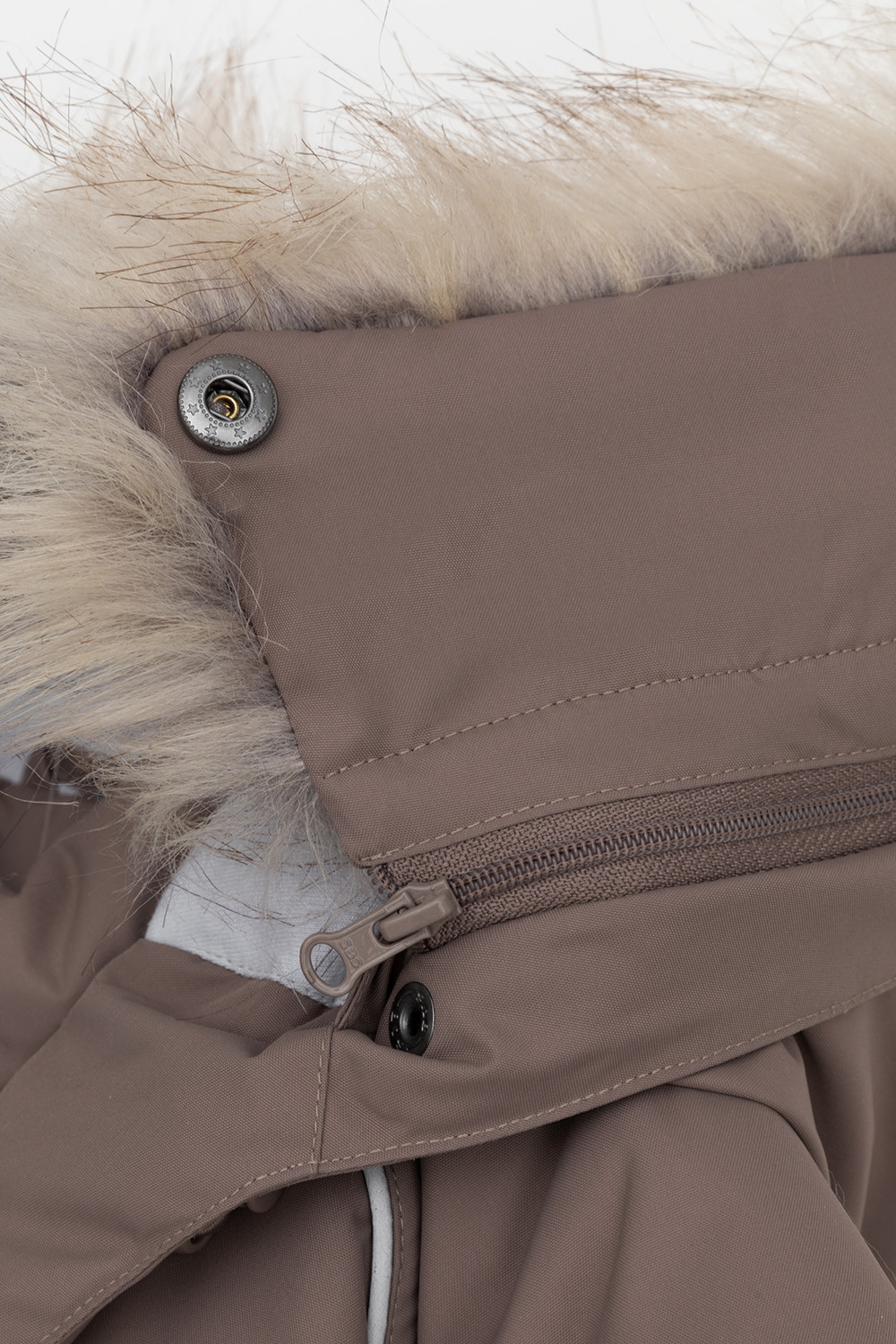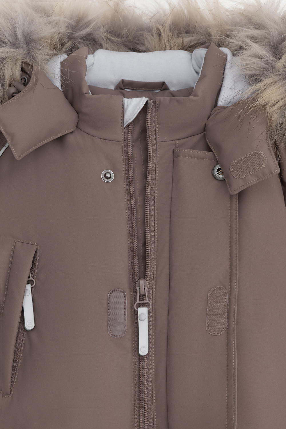 • Капюшон со съемным искусственным мехом и стяжкой со стопперами