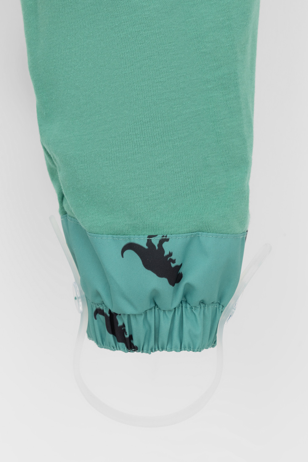 Ветровочный комбинезон ясельный из мембранной ткани с дополнительной тефлоновой обработкой. Данный вид обработки предохраняет изделие от загрязнения и лучше отводит влагу. Подклад из 100% хлопка. У изделия удлиненная молния для легкого одевания с защитой подбородка. Утяжка на капюшоне с потайными стопперами. По низу рукавов и брючин, а также на спинке изделия эластичная резинка для лучшего прилегания. Для фиксации комбинезона используются съемные силиконовые штрипки. В размерах 68-80 функциональные отвороты на рукавах и брючинах. Во всех изделиях верхнего ассортимента для безопасности ребенка предусмотрены светоотражающие элементы.