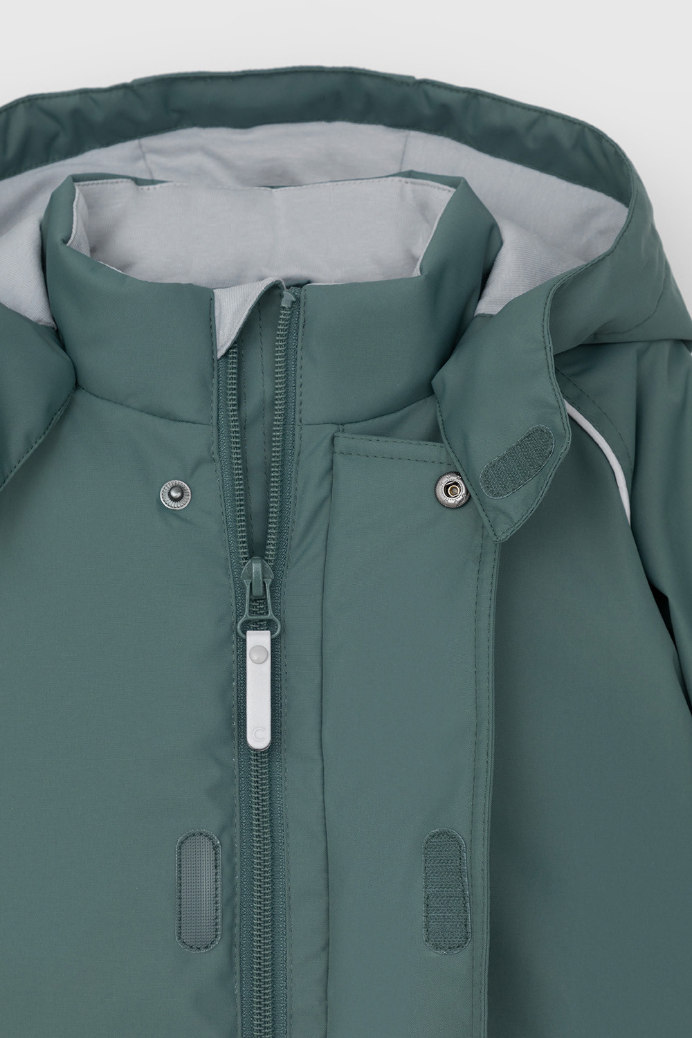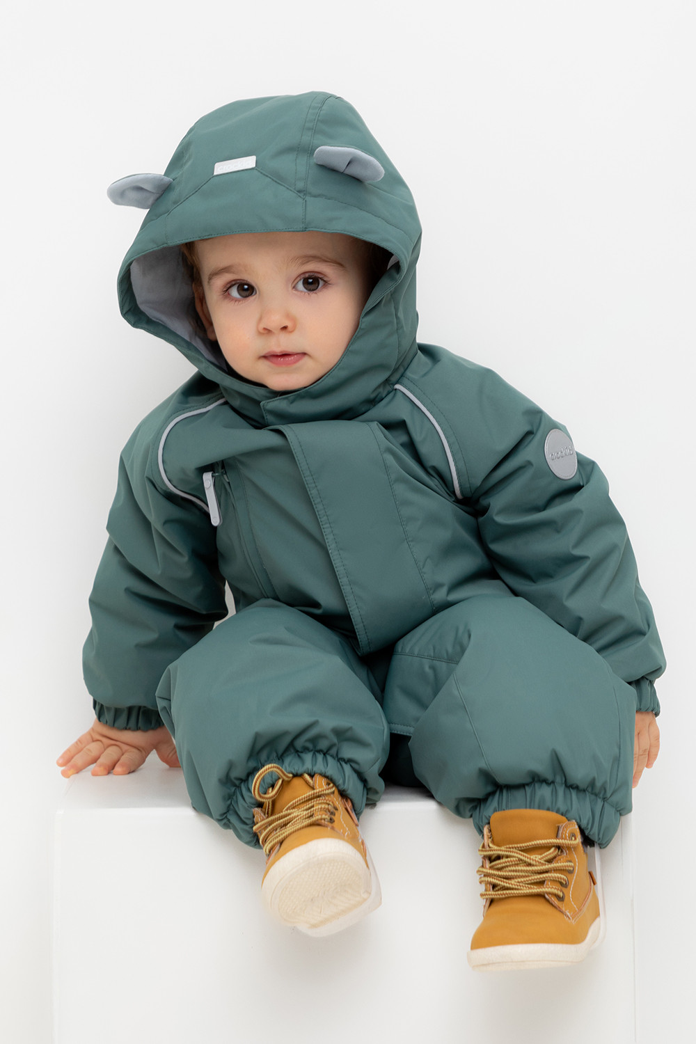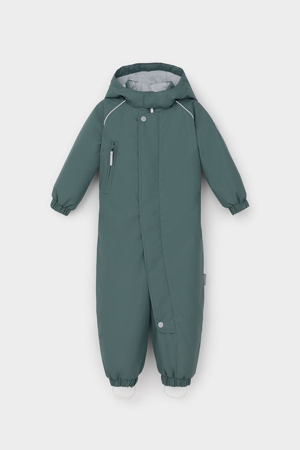 Демисезонный комбинезон ясельный с утеплителем SEE® 120 г/м2. Выполнен из мембранной ткани с дополнительной тефлоновой обработкой. Данный вид обработки предохраняет изделие от загрязнения и лучше отводит влагу. Подклад из 100% хлопка. Удлиненная молния для легкого одевания с защитой подбородка. Ветрозащитная планка фиксируется на липучках и кнопках. Утяжка на капюшоне с потайными стопперами. По низу рукавов и брючин, а также на спинке изделия предусмотрена эластичная резинка для лучшего прилегания. Для фиксации комбинезона используются съемные силиконовые штрипки. В размере 74-80 функциональные отвороты на рукавах и брючинах. Во всех изделиях верхнего ассортимента для безопасности ребенка предусмотрены светоотражающие элементы.