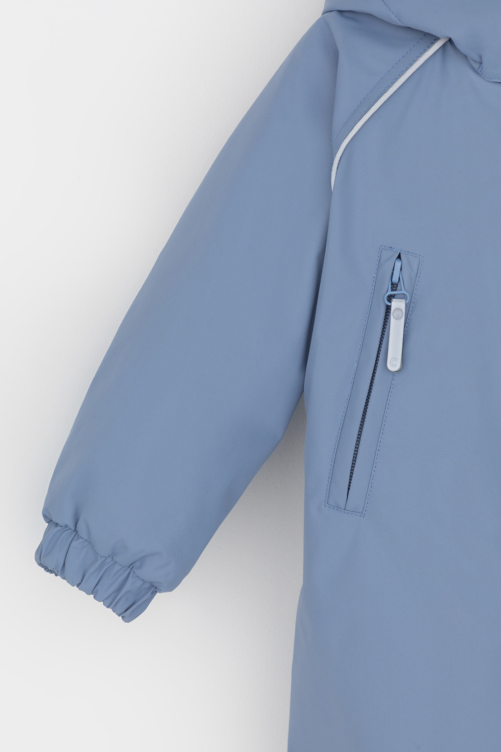 Демисезонный комбинезон ясельный с утеплителем SEE® 120 г/м2. Выполнен из мембранной ткани с дополнительной тефлоновой обработкой. Данный вид обработки предохраняет изделие от загрязнения и лучше отводит влагу. Подклад из 100% хлопка. Удлиненная молния для легкого одевания с защитой подбородка. Ветрозащитная планка фиксируется на липучках и кнопках. Утяжка на капюшоне с потайными стопперами. По низу рукавов и брючин, а также на спинке изделия предусмотрена эластичная резинка для лучшего прилегания. Для фиксации комбинезона используются съемные силиконовые штрипки. В размере 74-80 функциональные отвороты на рукавах и брючинах. Во всех изделиях верхнего ассортимента для безопасности ребенка предусмотрены светоотражающие элементы.