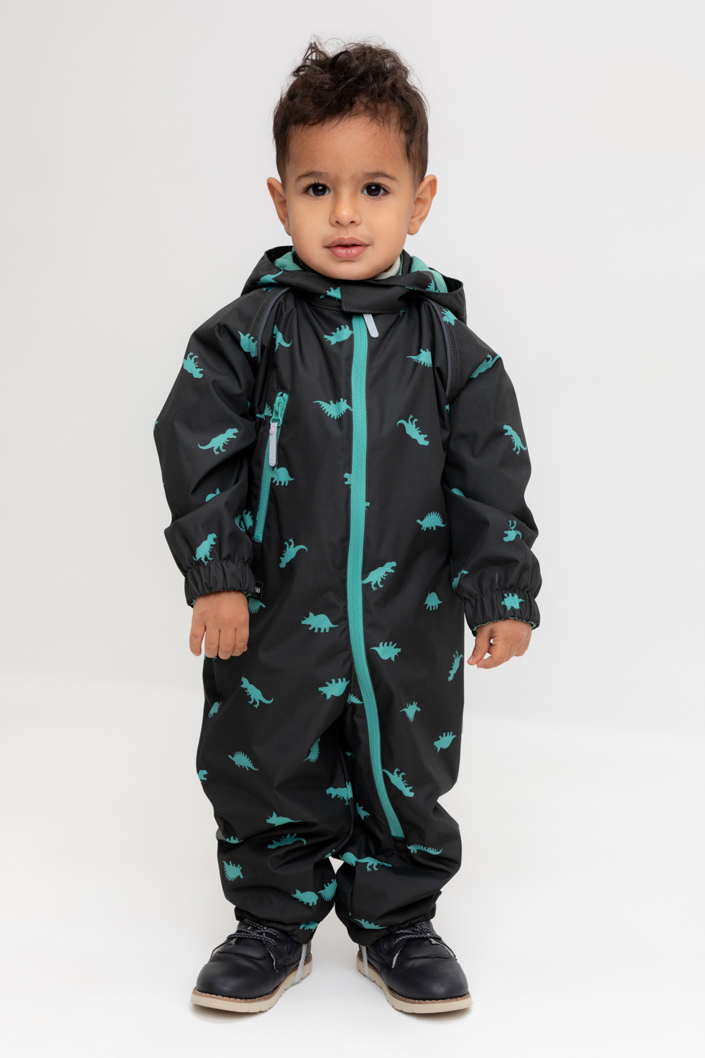 Ветровочный комбинезон ясельный из мембранной ткани с дополнительной тефлоновой обработкой. Данный вид обработки предохраняет изделие от загрязнения и лучше отводит влагу. Подклад из 100% хлопка. У изделия удлиненная молния для легкого одевания с защитой подбородка. Утяжка на капюшоне с потайными стопперами. По низу рукавов и брючин, а также на спинке изделия эластичная резинка для лучшего прилегания. Для фиксации комбинезона используются съемные силиконовые штрипки. В размерах 68-80 функциональные отвороты на рукавах и брючинах. Во всех изделиях верхнего ассортимента для безопасности ребенка предусмотрены светоотражающие элементы.