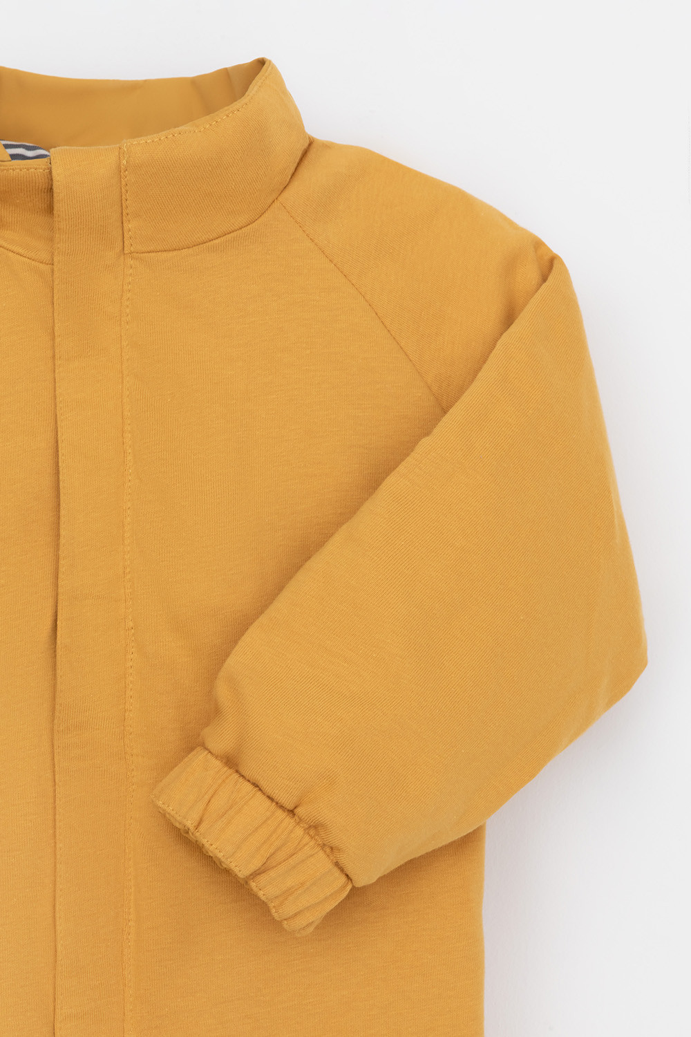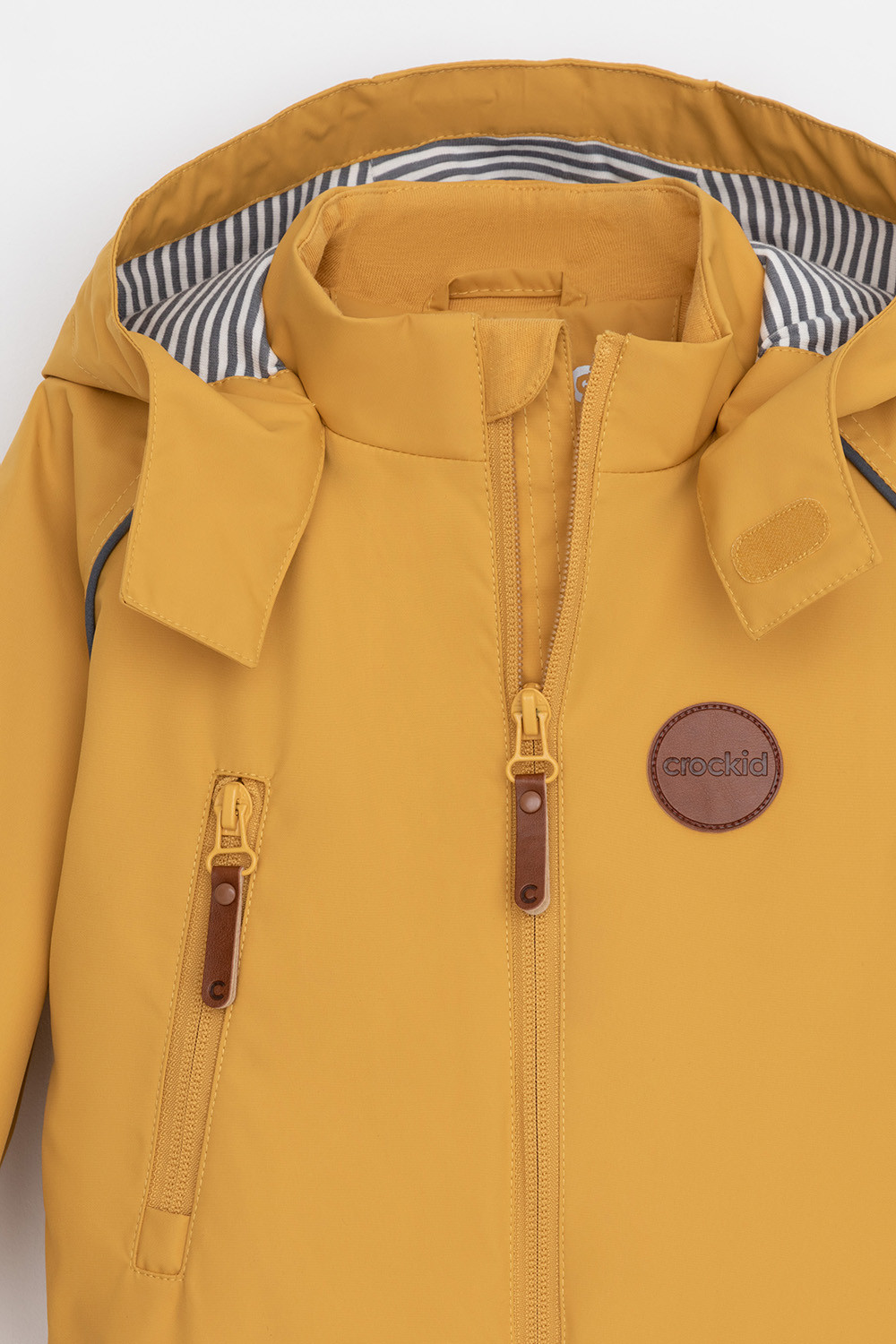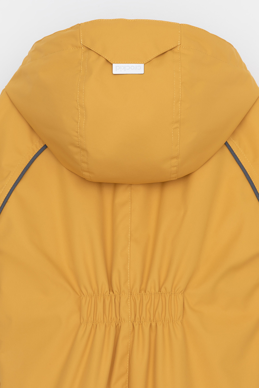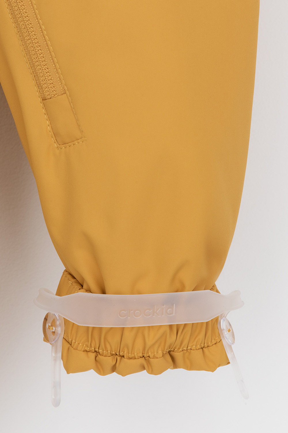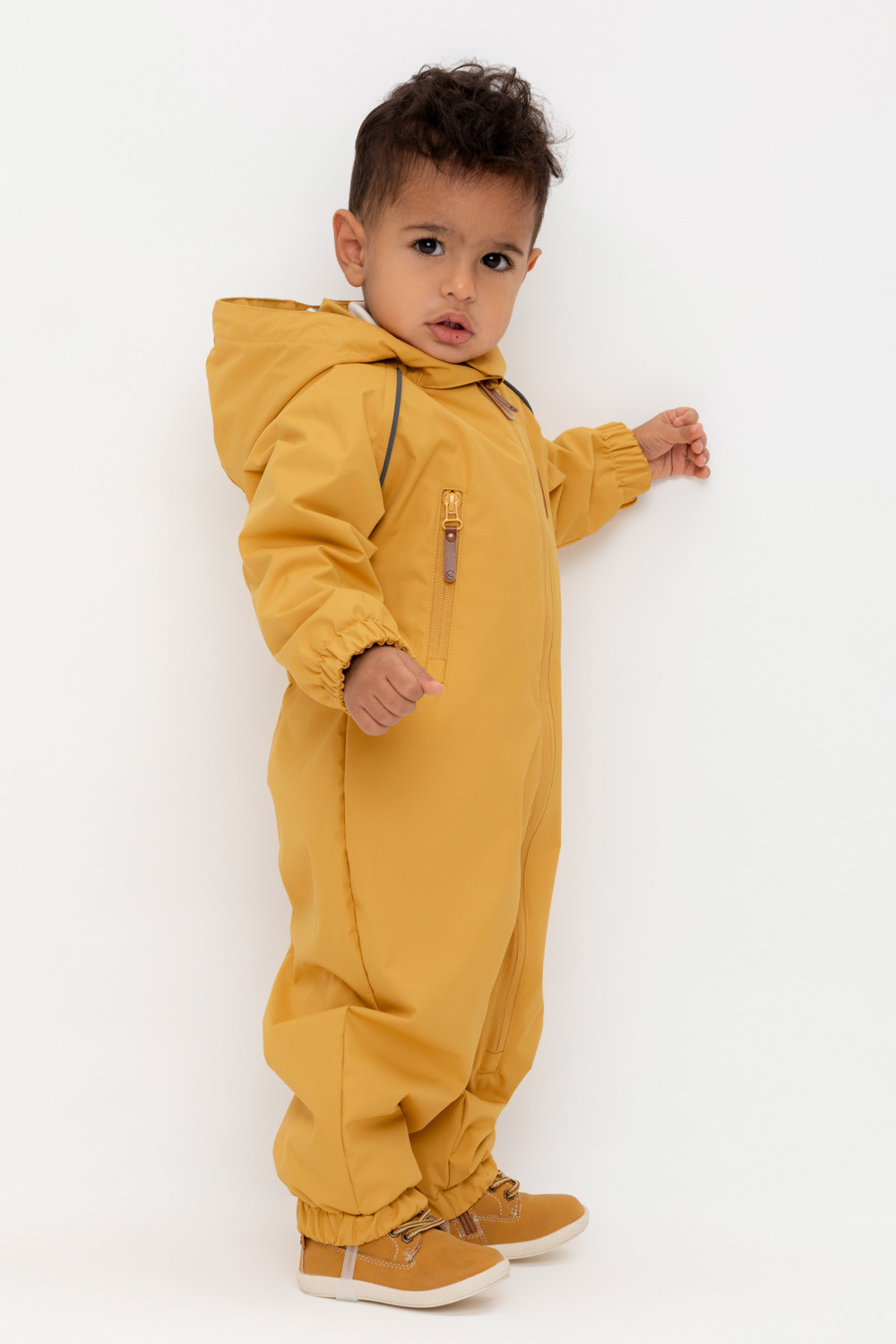 Ветровочный комбинезон ясельный из мембранной ткани с дополнительной тефлоновой обработкой. Данный вид обработки предохраняет изделие от загрязнения и лучше отводит влагу. Подклад из 100% хлопка. У изделия удлиненная молния для легкого одевания с защитой подбородка. Утяжка на капюшоне с потайными стопперами. По низу рукавов и брючин, а также на спинке изделия эластичная резинка для лучшего прилегания. Для фиксации комбинезона используются съемные силиконовые штрипки. В размерах 68-74 и 74-80 функциональные отвороты на рукавах и брючинах. Во всех изделиях верхнего ассортимента для безопасности ребенка предусмотрены светоотражающие элементы.