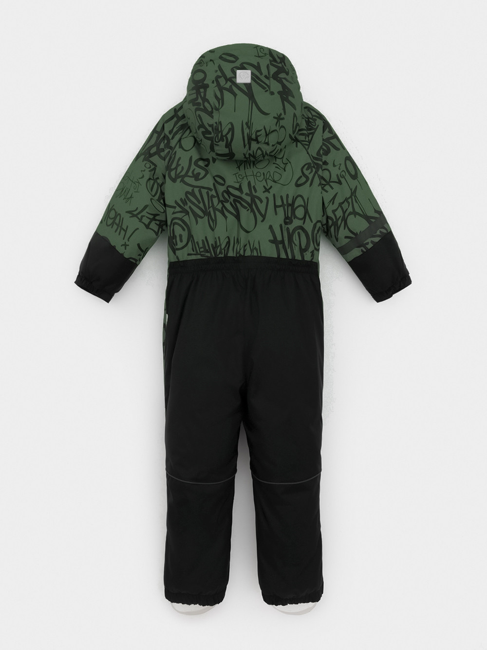 Зимний комбинезон для мальчика с утеплителем Fellex®: 250 г/м2 . Выполнен из мембранной ткани с дополнительной тефлоновой обработкой, которая предохраняет изделие от загрязнений и отталкивает влагу. Подклад выполнен из 100% полиэстера Tricot. Комбинезон застёгивается на молнию и внешнюю планку на липучках и кнопках, предусмотрена защита подбородка. Съёмный капюшон имеет эластичную утяжку со стопперами. Резинка по спинке обеспечивает лучшее прилегание. По бокам два кармана на молнии. Эластичные манжеты на рукавах  регулируются по ширине с помощью липучки, по низу изделия - с помощью кнопки. Внутренняя противоснежная юбка защищает обувь от попадания снега и удерживает комбинезон в закреплённом положении, предусмотрены отстёгивающиеся штрипки. Во всех изделиях верхнего ассортимента для безопасности ребёнка предусмотрены светоотражающие элементы.