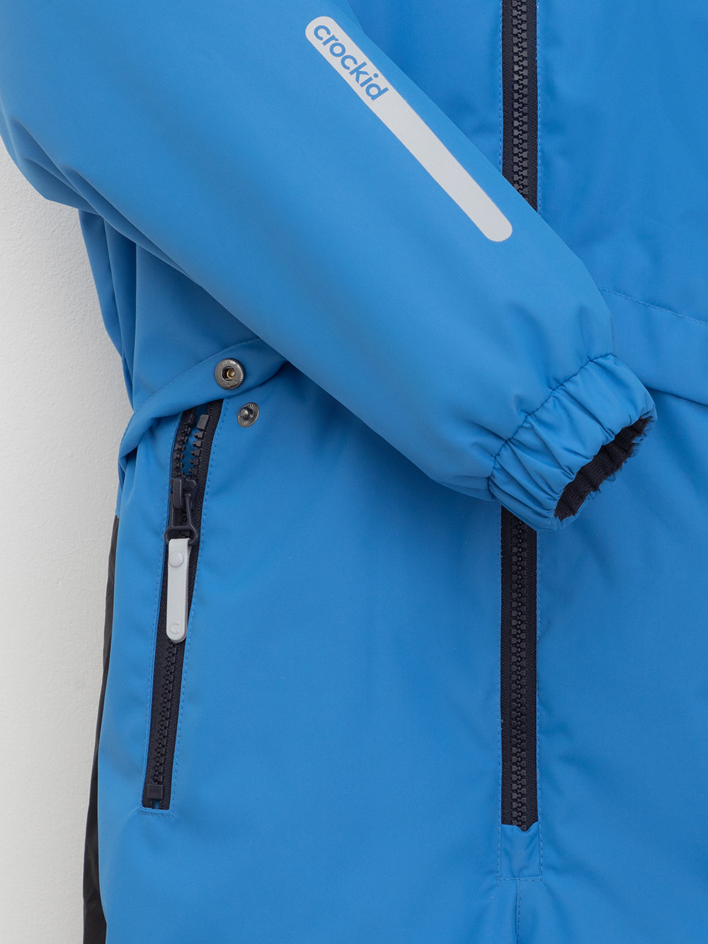 Демисезонный комбинезон для мальчика с утеплителем SEE®, 120 г/м2. Выполнен из мембранной ткани с дополнительной тефлоновой обработкой. Данный вид обработки предохраняет изделие от загрязнения и лучше отводит влагу. Подклад из 100% полиэстера. Для удобного одевания комбинезон застёгивается на удлинённую молнию с защитой подбородка. Капюшон не снимается, по верхнему краю есть эластичная вставка. По низу рукавов и брючин, а также на спинке изделия предусмотрены эластичные резинки для лучшего прилегания. Для фиксации комбинезона используются съёмные силиконовые штрипки. Во всех изделиях верхнего ассортимента для безопасности ребёнка предусмотрены светоотражающие элементы.