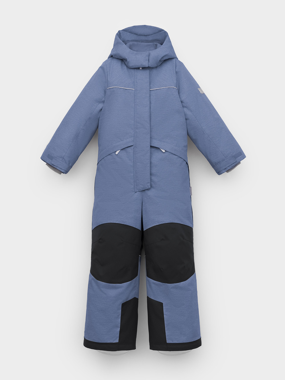 Зимний комбинезон для мальчика с утеплителем Fellex®: 250 г/м2 . Выполнен из мембранной ткани с дополнительной тефлоновой обработкой, которая предохраняет изделие от загрязнений и отталкивает влагу. Подклад выполнен из 100% полиэстера Tricot. Комбинезон застёгивается на молнию и внешнюю планку на липучках и кнопках, предусмотрена защита подбородка. Съёмный капюшон имеет эластичную резинку по бокам. Резинка по спинке обеспечивает лучшее прилегание. По бокам два кармана на молнии. На рукавах эластичные внутренние манжеты, ширина регулируется при помощи липучки. Внутренняя противоснежная юбка по низу изделия защищает обувь от попадания снега и удерживает комбинезон в закреплённом положении. В размерах с 98-104 по 116-122  предусмотрены отстёгивающиеся штрипки. Во всех изделиях верхнего ассортимента для безопасности ребёнка предусмотрены светоотражающие элементы.