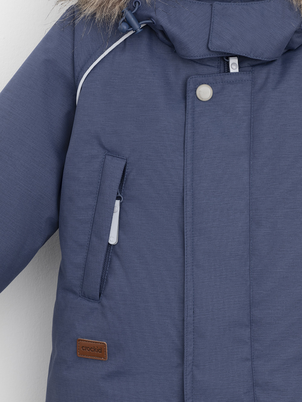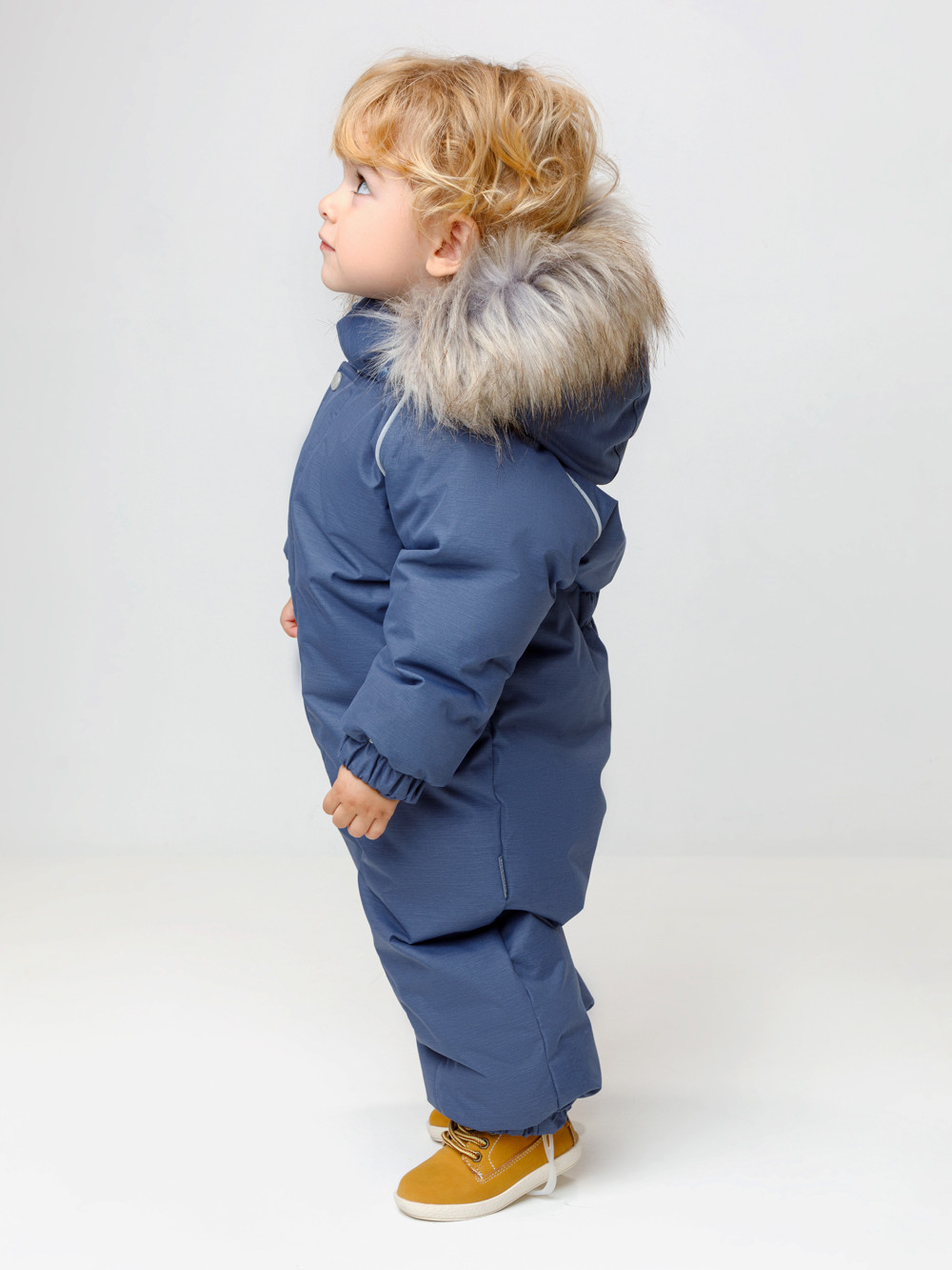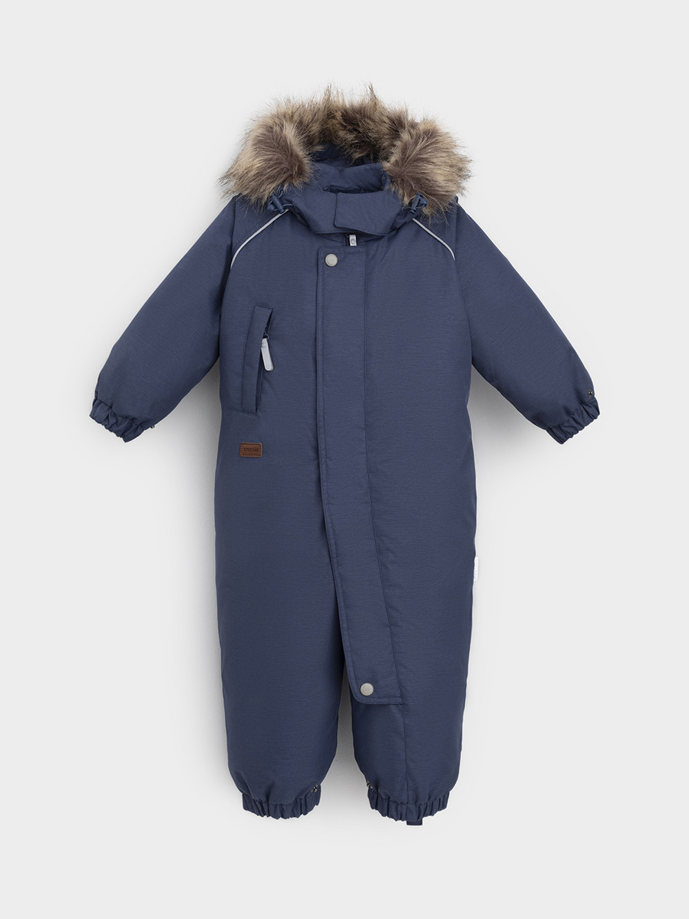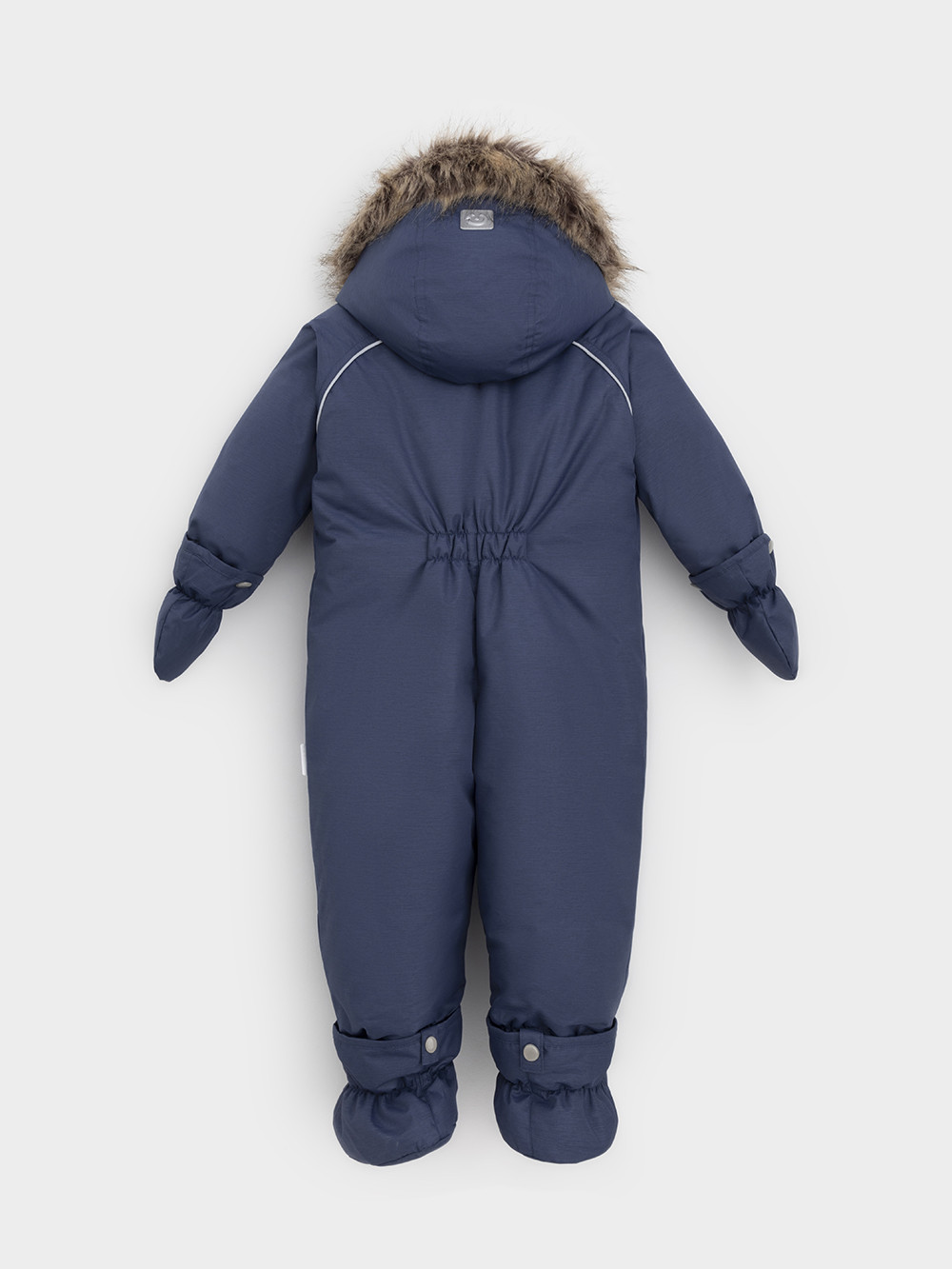 Зимний комбинезон ясельный с натуральным утеплителем из гусиного пуха (70%) и пера (30%). Выполнен из мембранной ткани с дополнительной тефлоновой обработкой, которая предохраняет изделие от загрязнений и отталкивает влагу. Подклад выполнен из 100% хлопка. Комбинезон застёгивается на молнию и внешнюю планку на липучках, предусмотрена защита подбородка. Несъёмный капюшон имеет эластичную утяжку со стопперами и отстёгивающийся мех на молнии. Резинка по спинке для лучшего прилегания. На груди карман на молнии. По рукавам и низу изделия эластичные манжеты, на ножках отстёгивающиеся силиконовые штрипки. В размерах с 68-74 по 80-86 в комплекте идут рукавицы и пинетки. Во всех изделиях верхнего ассортимента для безопасности ребёнка предусмотрены светоотражающие элементы.