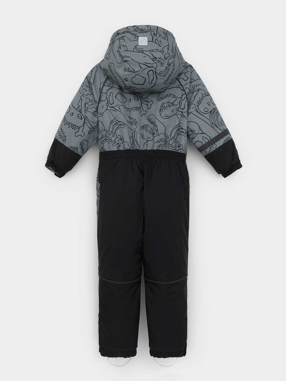 Зимний комбинезон для мальчика с утеплителем Fellex®: 250 г/м2 . Выполнен из мембранной ткани с дополнительной тефлоновой обработкой, которая предохраняет изделие от загрязнений и отталкивает влагу. Подклад выполнен из 100% полиэстера Tricot. Комбинезон застёгивается на молнию и внешнюю планку на липучках и кнопках, предусмотрена защита подбородка. Съёмный капюшон имеет эластичную утяжку со стопперами. Резинка по спинке обеспечивает лучшее прилегание. По бокам два кармана на молнии. Эластичные манжеты на рукавах  регулируются по ширине с помощью липучки, по низу изделия - с помощью кнопки. Внутренняя противоснежная юбка защищает обувь от попадания снега и удерживает комбинезон в закреплённом положении. В размерах с 98-104 по 116-122  предусмотрены отстёгивающиеся штрипки. Во всех изделиях верхнего ассортимента для безопасности ребёнка предусмотрены светоотражающие элементы.